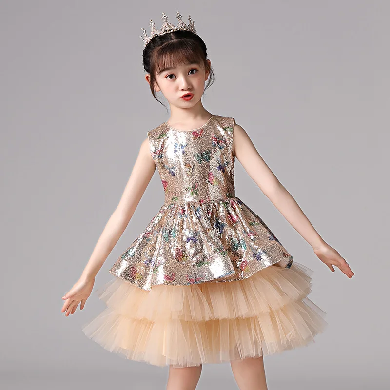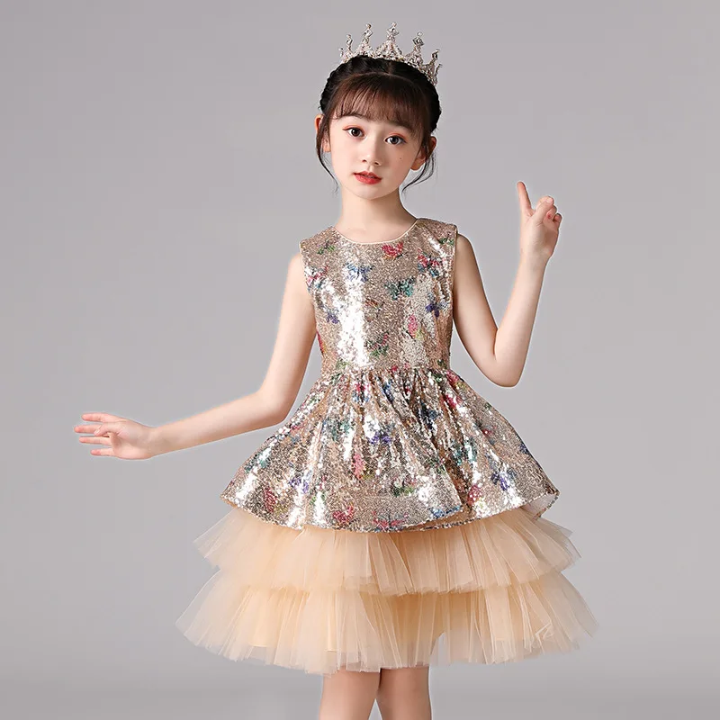 2021 праздничный костюм, платье для девочки с цветами, платье принцессы цвета шампанского, летнее Радужное детское платье с блестками, юбка для девочки, детское платье