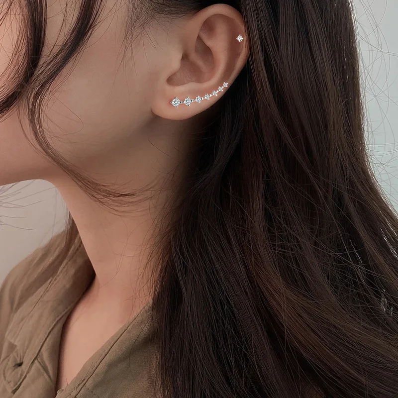 Серьги-клипсы DAIWUJAN, Хрустальный пирсинг, для женщин, серебряные...