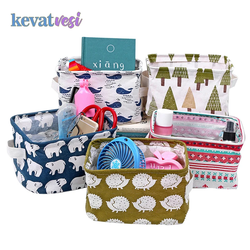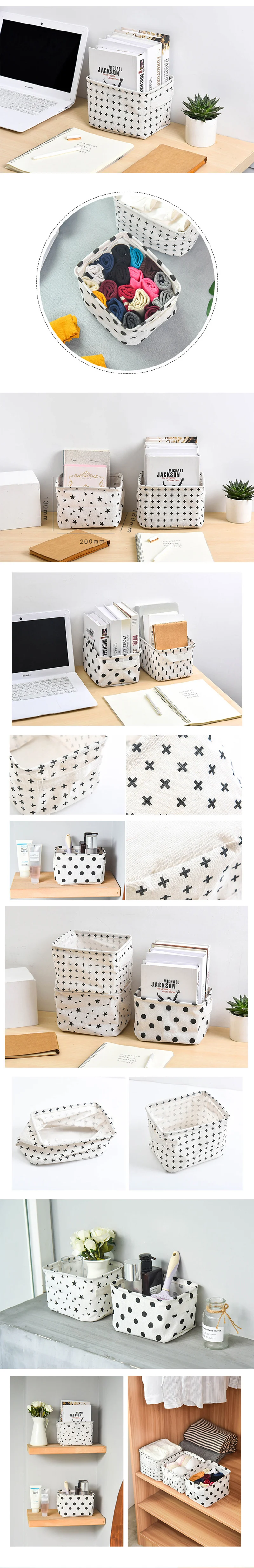 Льняная настольная корзина для хранения, складная коробка для хранения игрушек, косметики, нижнего белья, органайзер, канцелярские принадлежности, контейнер
