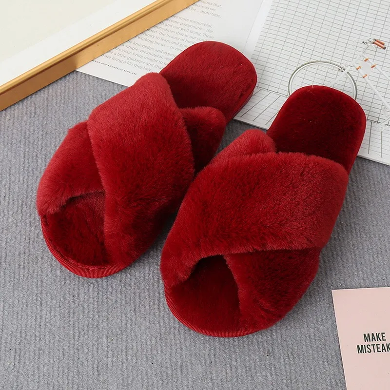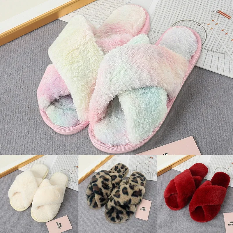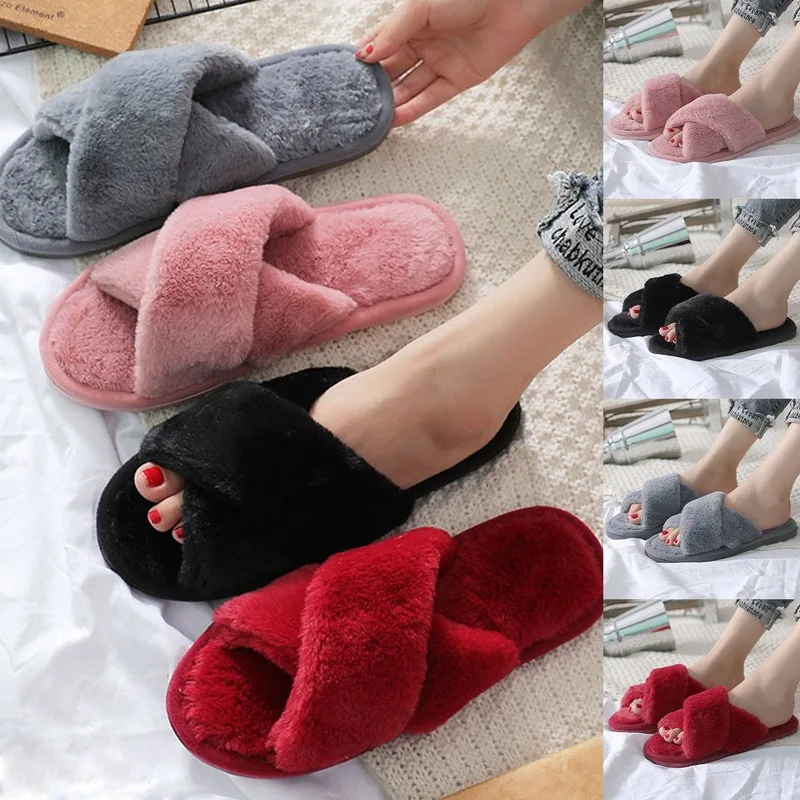 Женские пушистые шлепанцы с мехом, Осень-зима