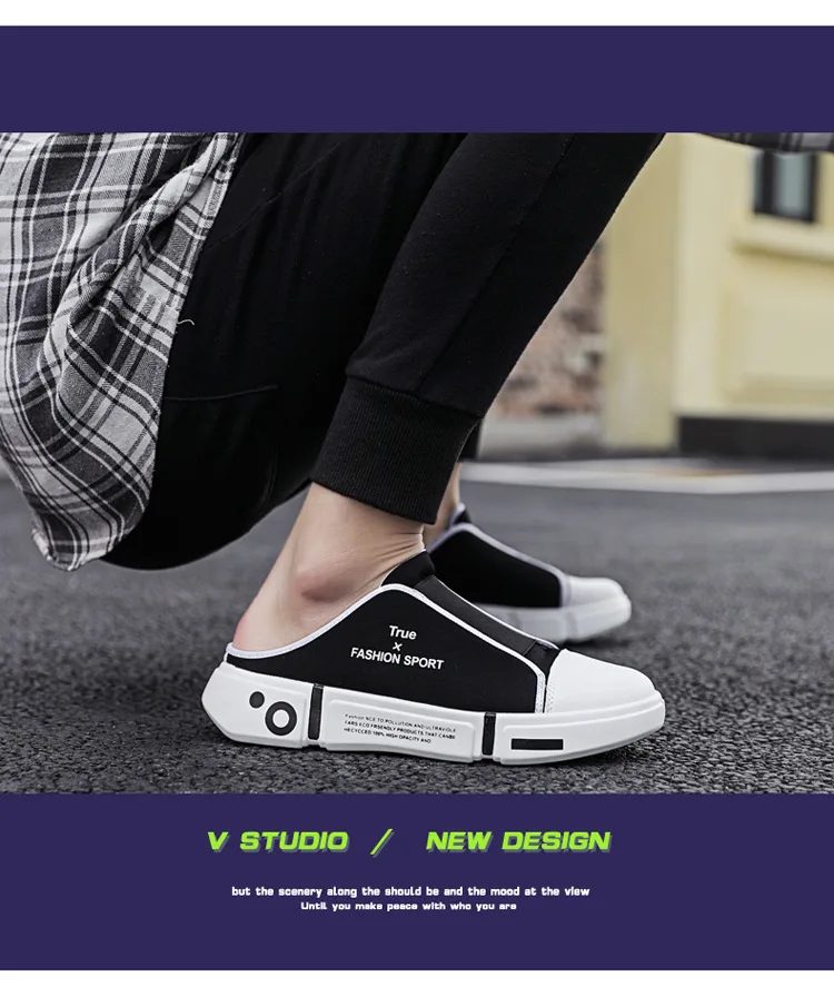 Мужские летние сетчатые дышащие мюли, пляжные шлепанцы с подкладкой, однотонные мужские тапки для улицы, 2021