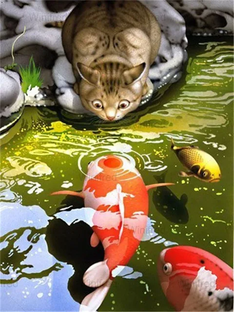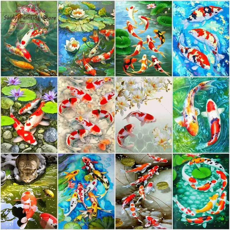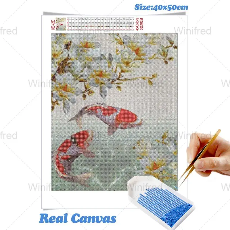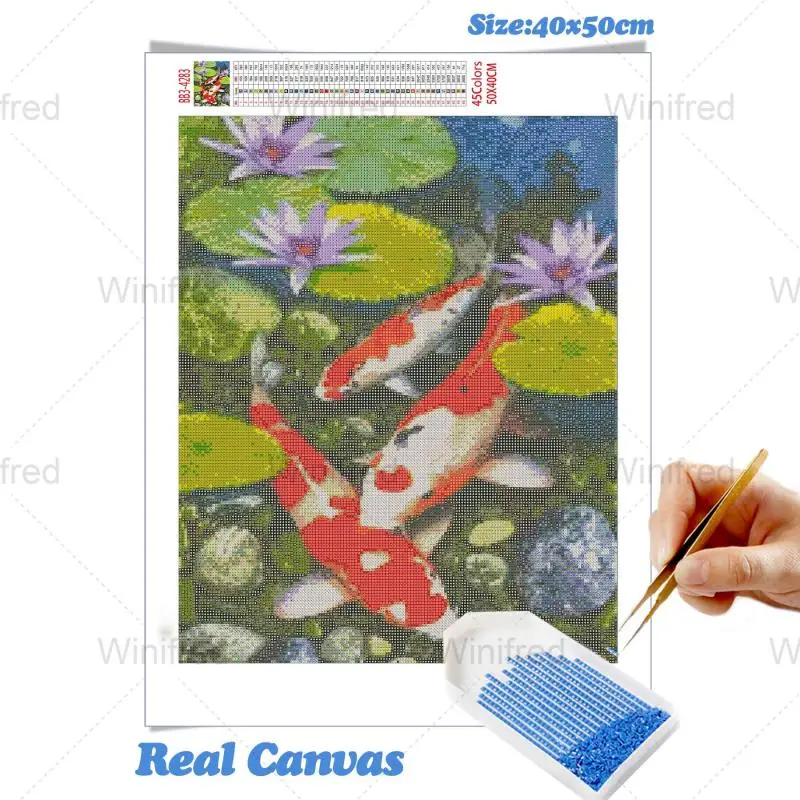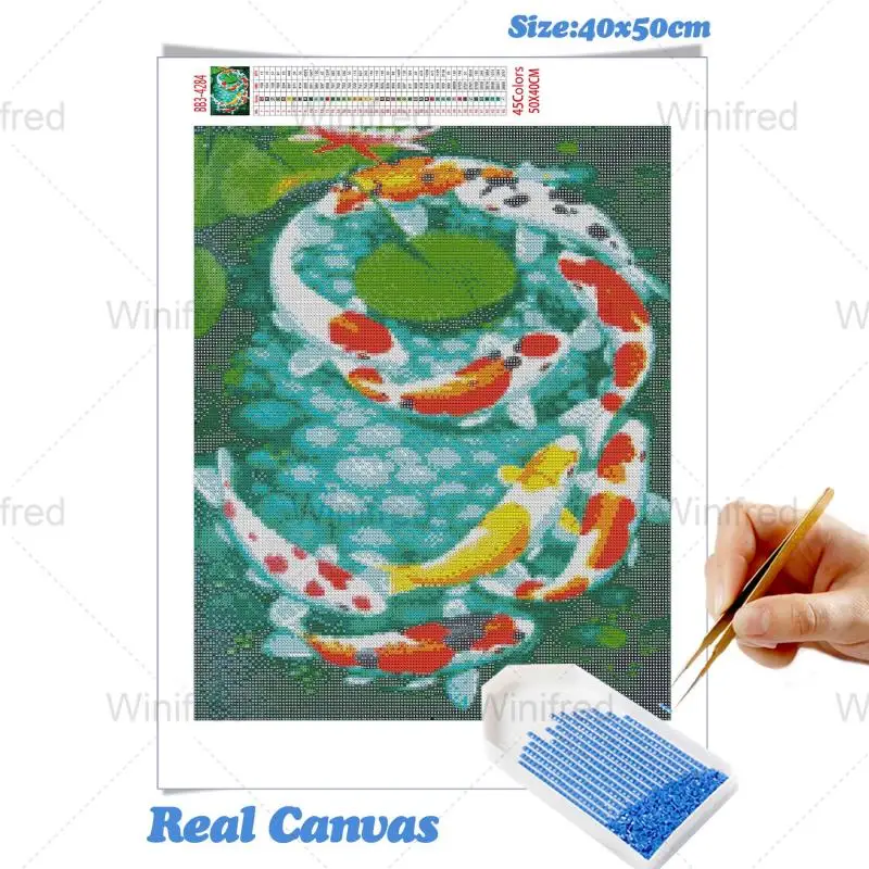 Ремесленная поделка, алмазная вышивка пруд на карпа, алмазная картина сделай сам, алмазная вышивка крестиком Рыбки кои, акриловая Алмазная мозаика, домашний декор, гостиная