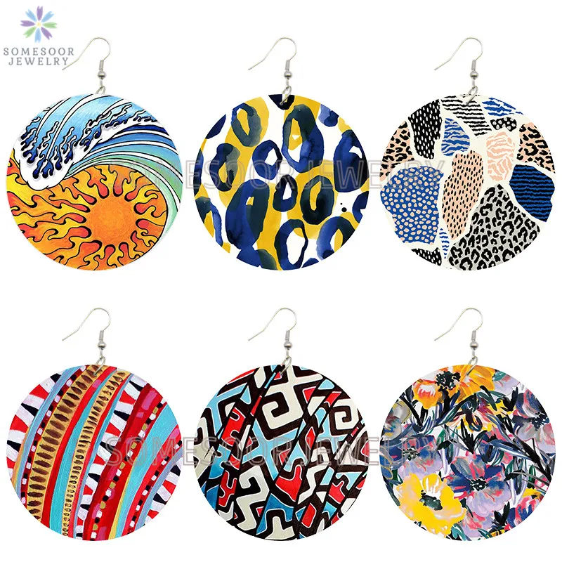 SOMESOOR сотни стилей модные африканские деревянные висячие серьги ...