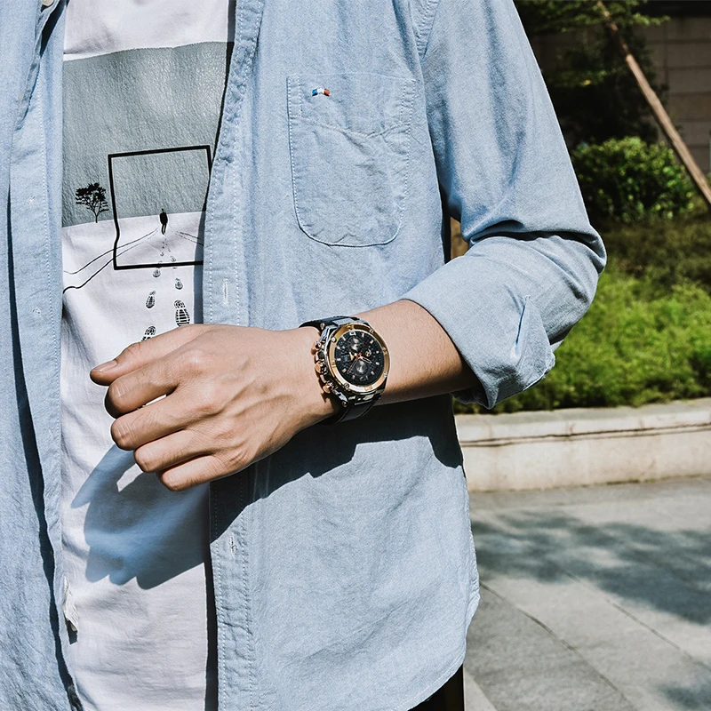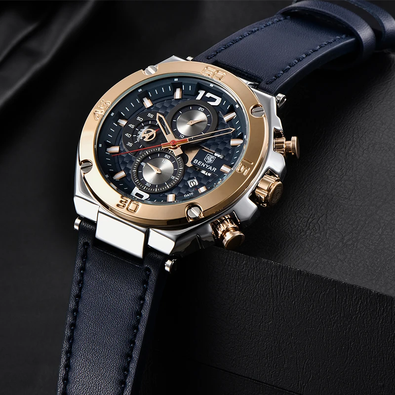 BENYAR бренд Для мужчин Бизнес хронограф часы 45 мм, с большим циферблатом и Для мужчин кварцевые наручные часы Водонепроницаемый кожаные военные часы reloj