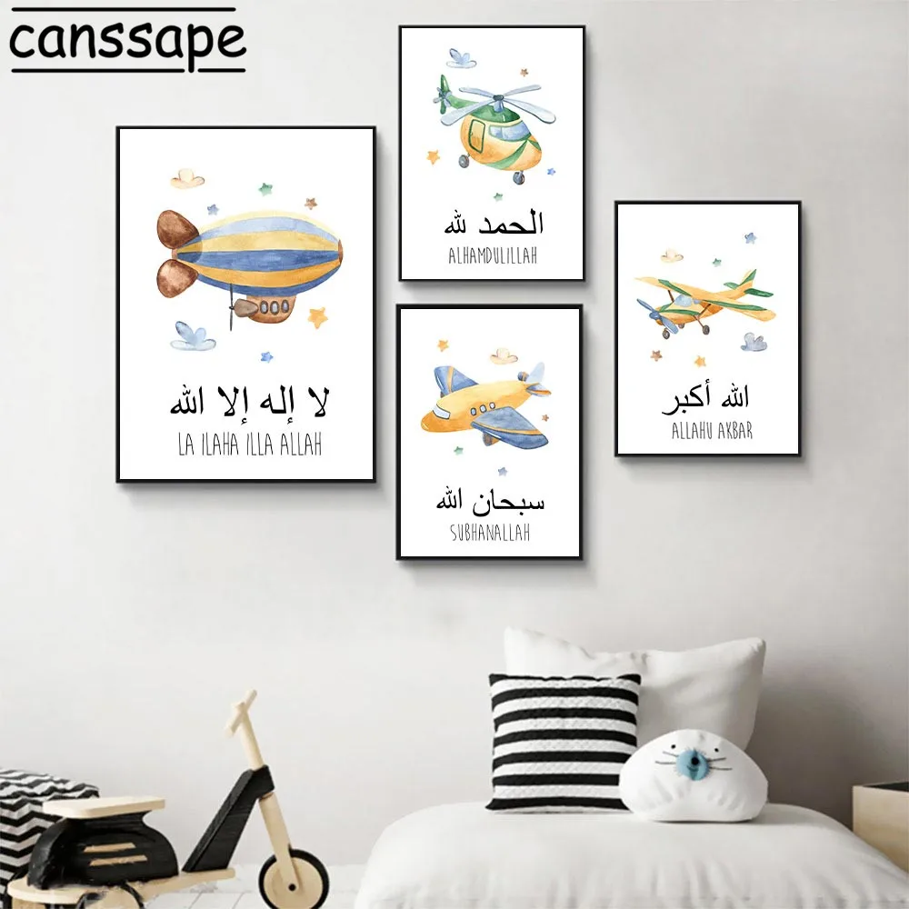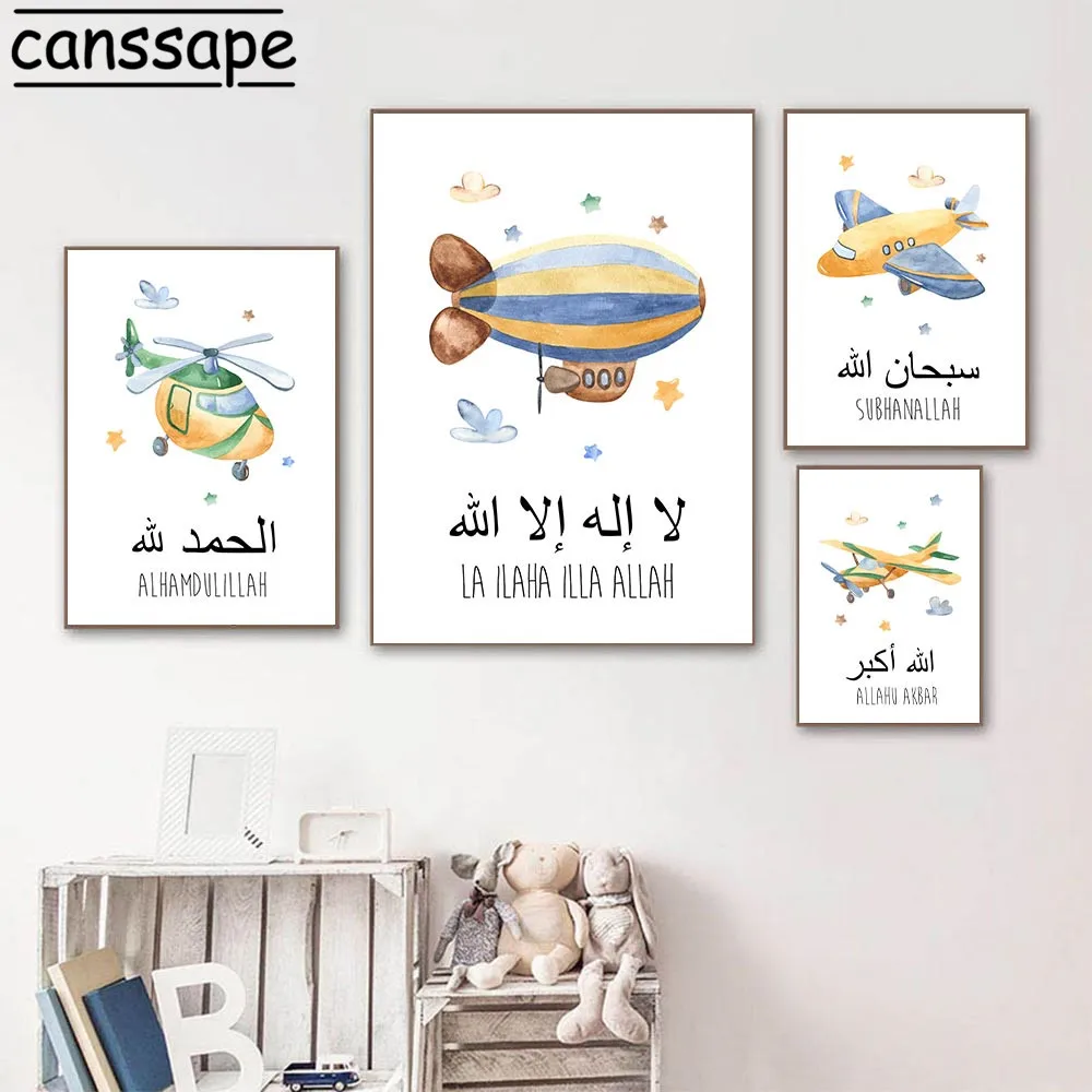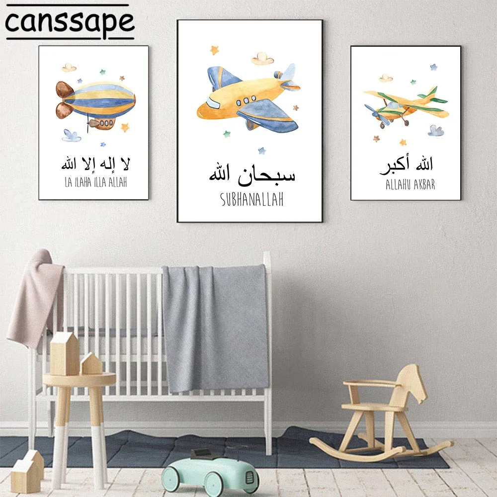 Плакат на холсте для детской, с изображением самолета, на воздушном шаре, постеры с исламистами, настенные картины в скандинавском стиле, декор для спальни для маленьких мальчиков