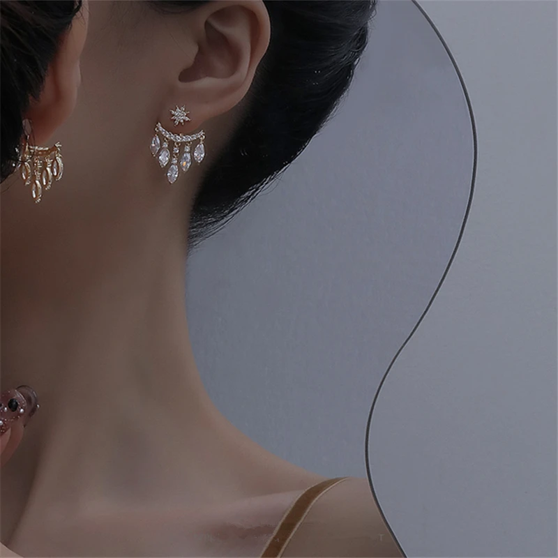Модные элегантные серьги-гвоздики веерообразной формы с имитацией ж...