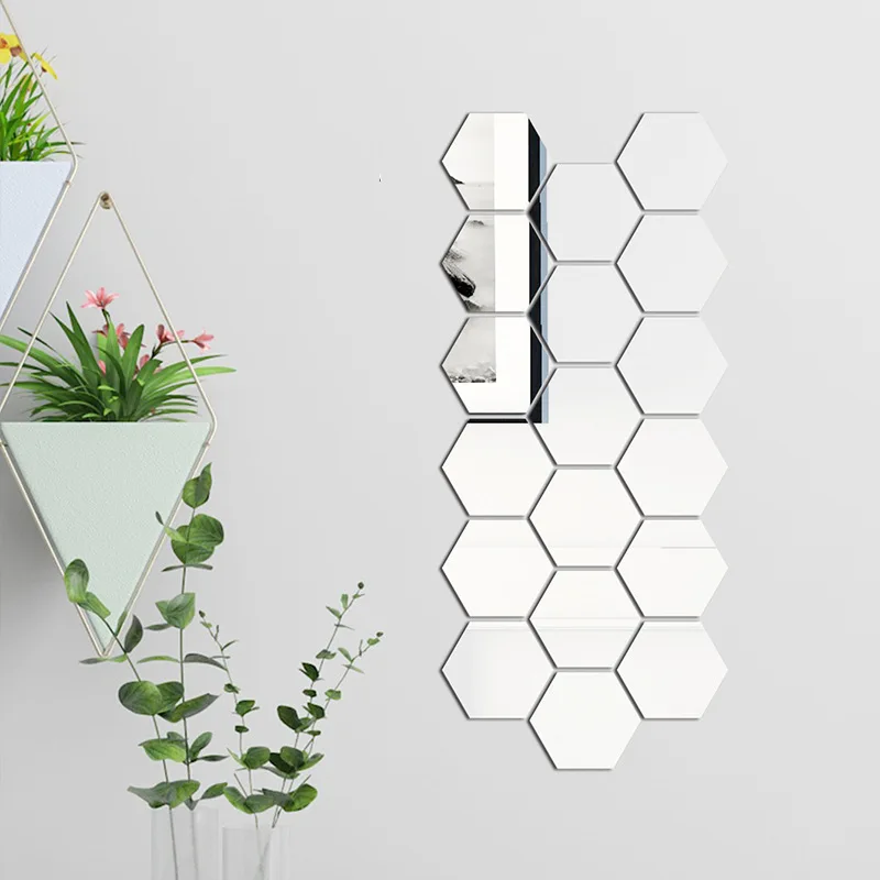 Самоклеющиеся отражающие шестиугольные зеркальные наклейки на стену, настенные наклейки для спальни, украшения дома, 12 шт./компл.