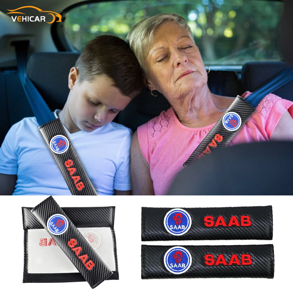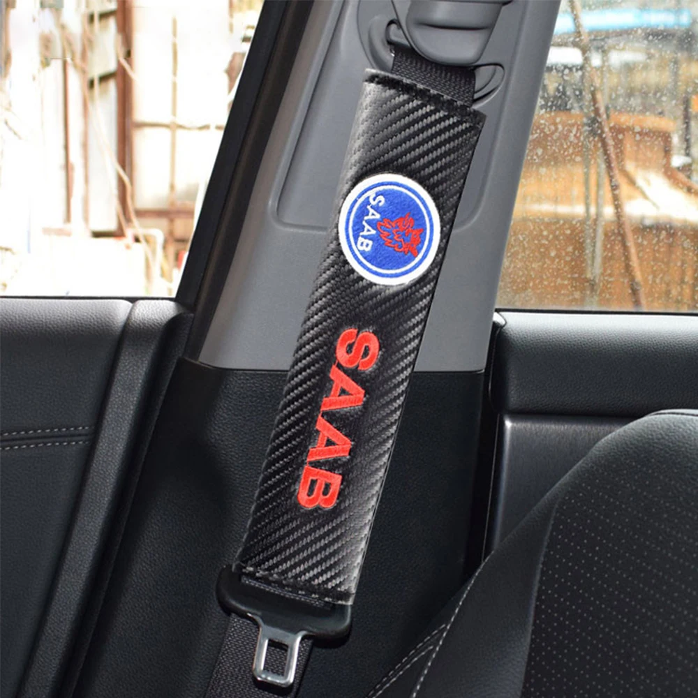 Автомобильный карбоновый защитный ремень Fibe для автомобиля, 2 шт., защитные прокладки для saab, автомобильные аксессуары, автомобильный логотип, вязание, сделай сам, украшение