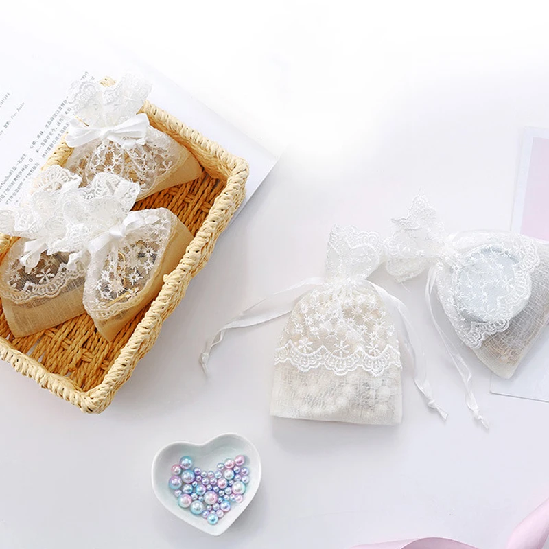 Белый шнурок из сетчатой ткани, мешки из Свадебная вечеринка печень...