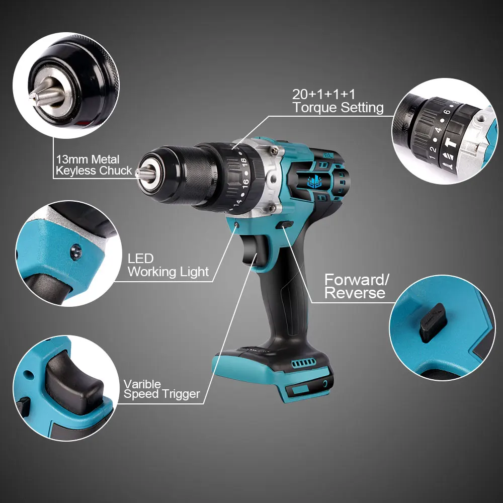 3-в-1 с бесщеточным двигателем электрическая дрель 13 мм 20 + 3 знака после вращающего момента Электрическая аккумуляторная ударная Ударная дрель электрическая отвертка для Makita Батарея