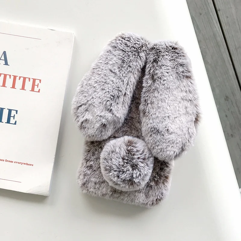 Чехол с объемным изображением кролика, пушистый теплый меховой чехо...