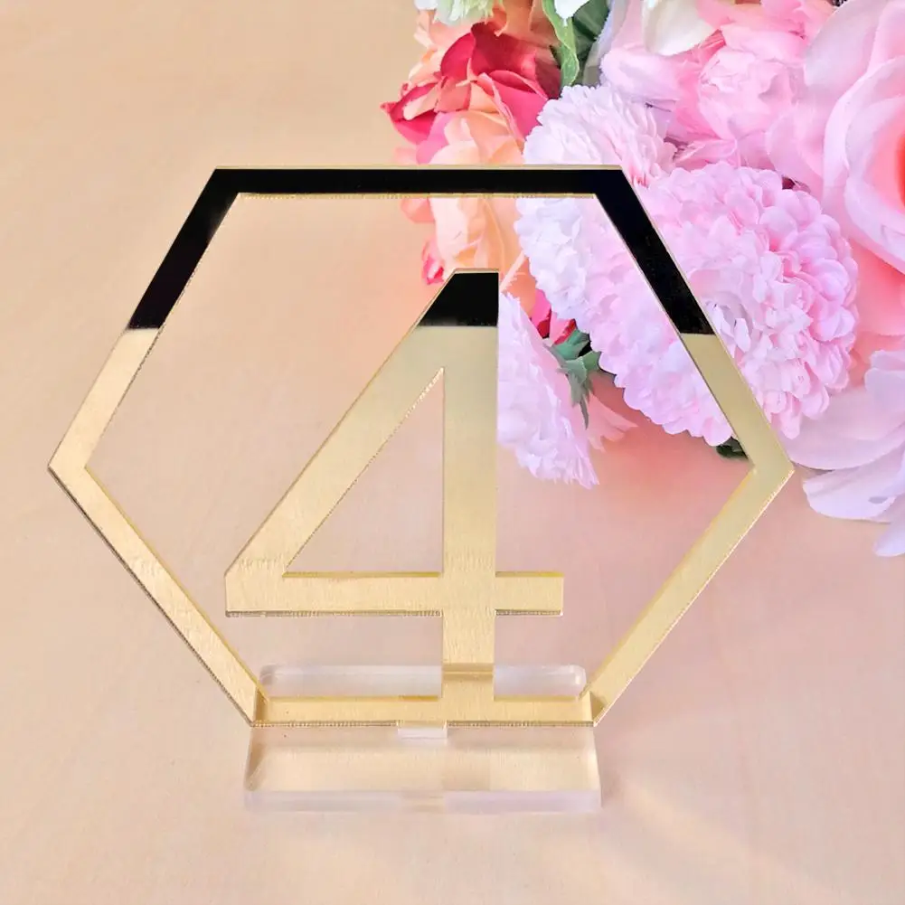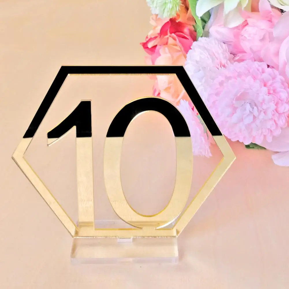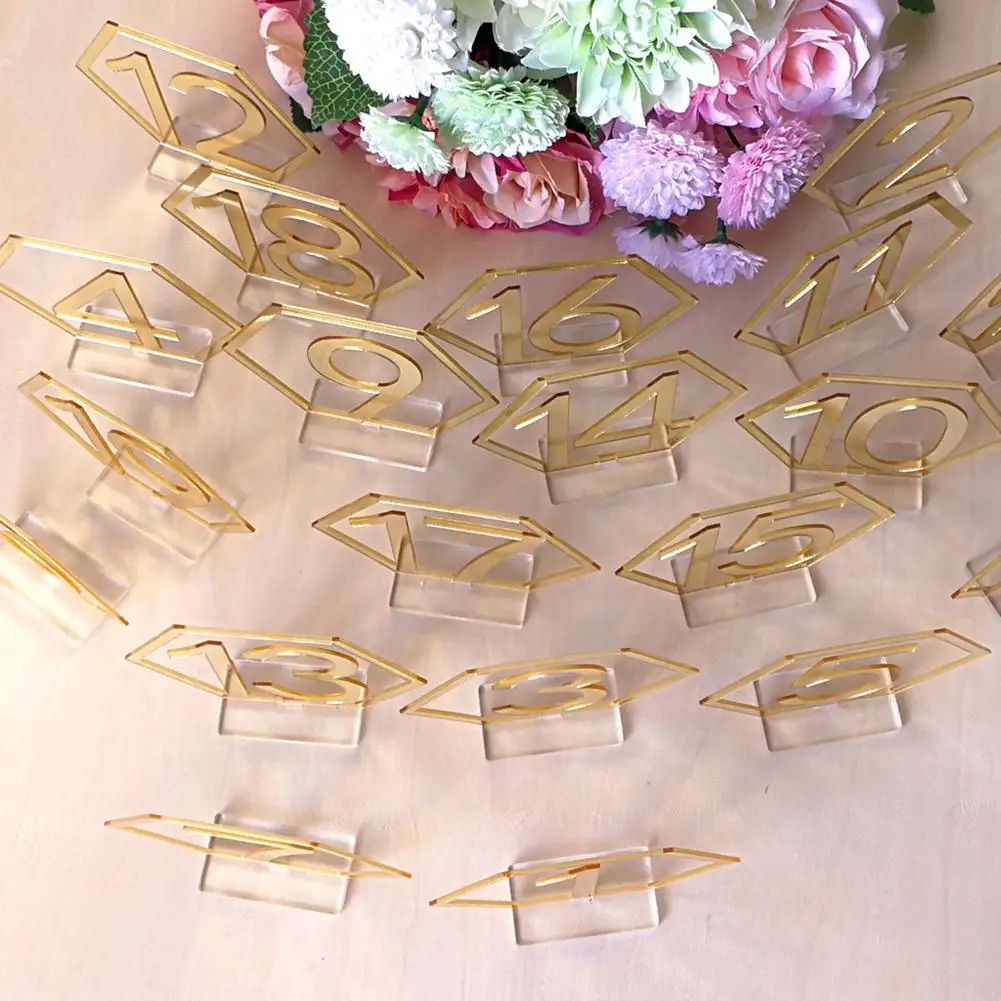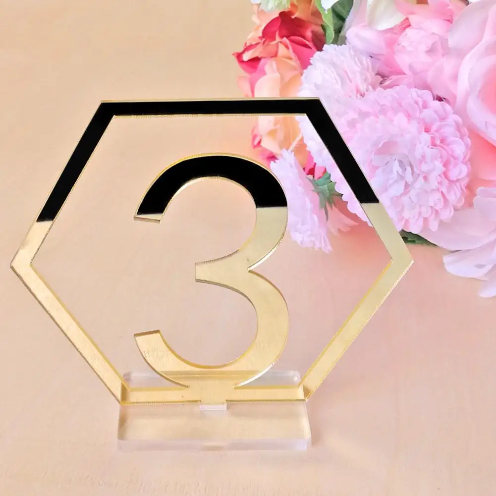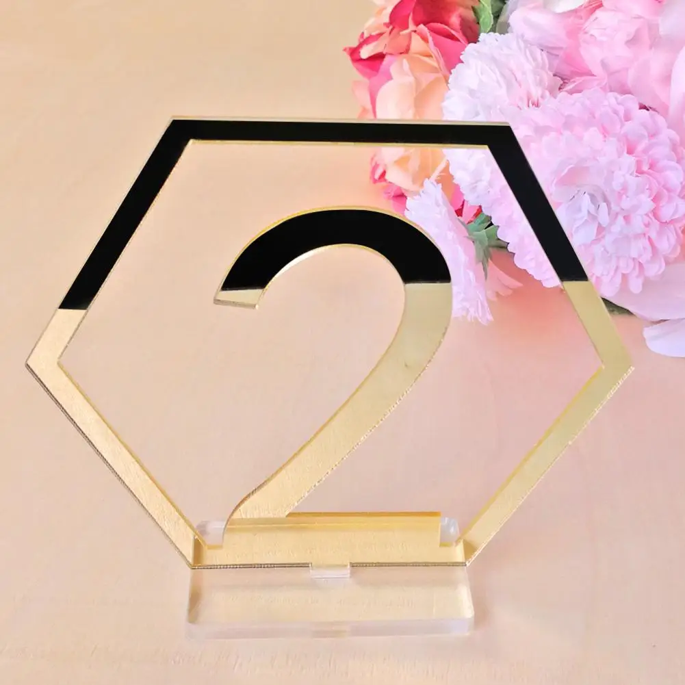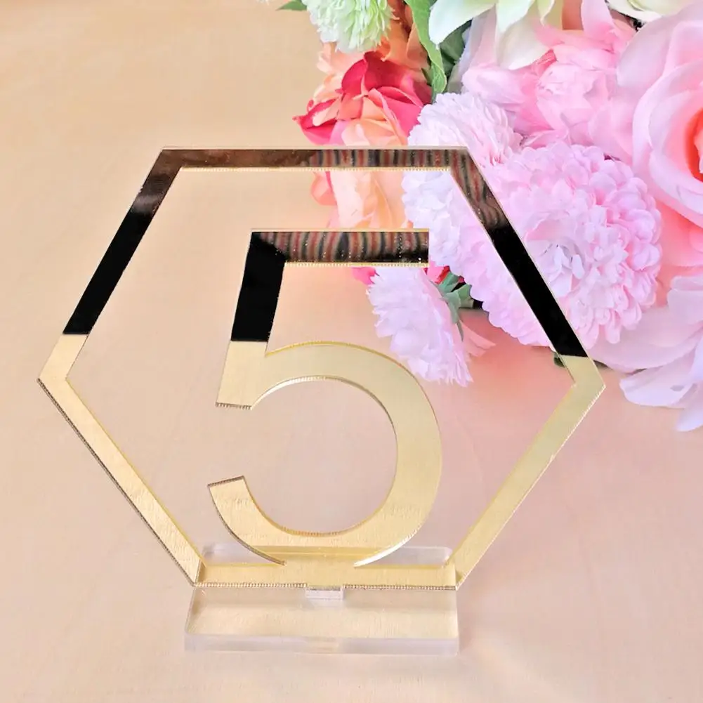 Шестигранные таблички на стол с цифрами для Свадебная вечеринка Декор: золотистые акриловые День рождения номер геометрический стол место карты римскими цифрами