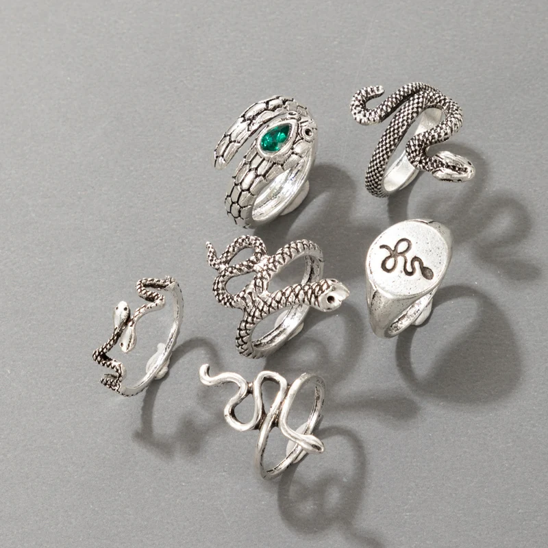 HuangTang 6 шт.компл. винтажный набор колец на палец в виде змеи для женщин и мужчин в стиле бохо с зелеными кристаллами соединительные кольца готические очаровательные ювелирные изделия 18732