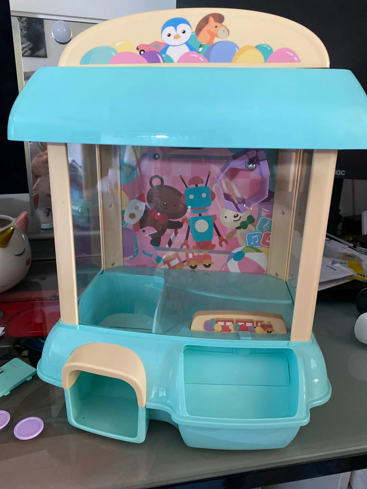 игрушка отличная! даже не ожидала. собирается легко, инструкция понятная, хотя можно и без неё. Игрушка с подсветкой и заводной музыкой.Громкость регулируется, мелодию можно менять. Доставка до Москвы за 12 дней. Ребёнок счастлив! будем заказывать дополнительный комплект мягких игрушек для этого автомата.