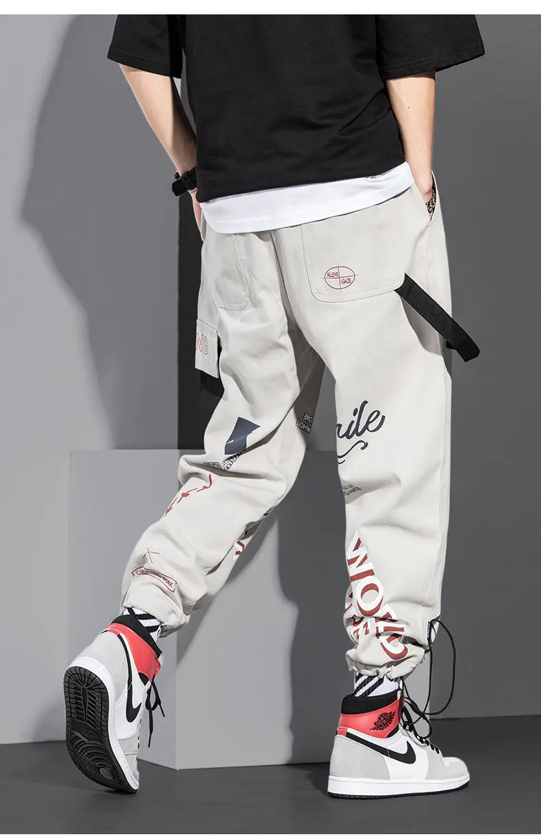 Джоггеры мужские с принтом, спортивные штаны-карго, брюки до щиколотки, Спортивные Повседневные для бега, уличная одежда, черные и белые