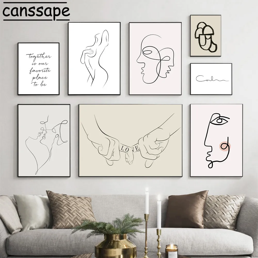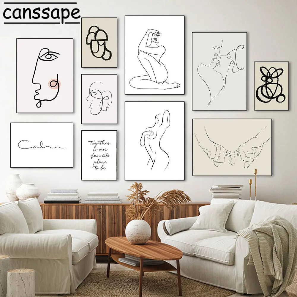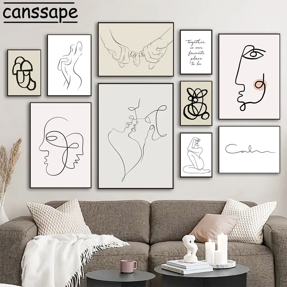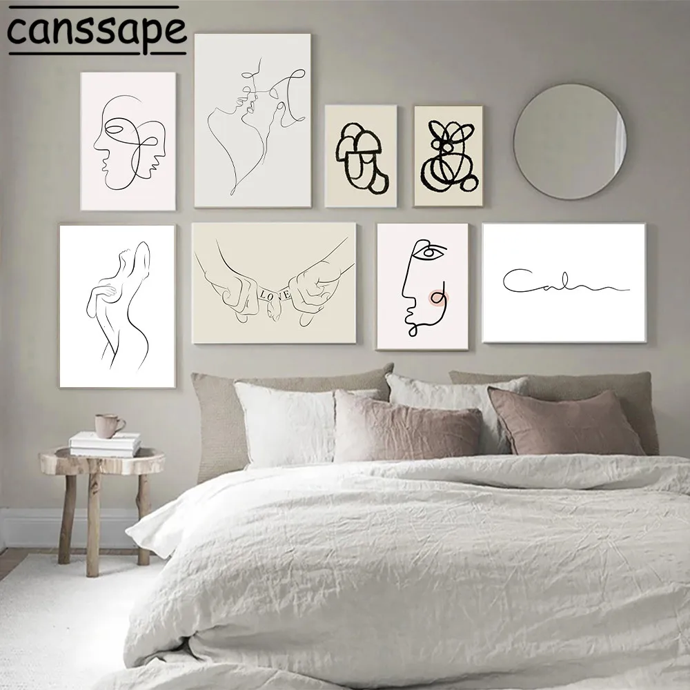 Абстрактная Настенная картина, холст с изображением обнаженной девушки, линия, лицо, минималистские плакаты, скандинавские настенные картины, домашний декор для спальни