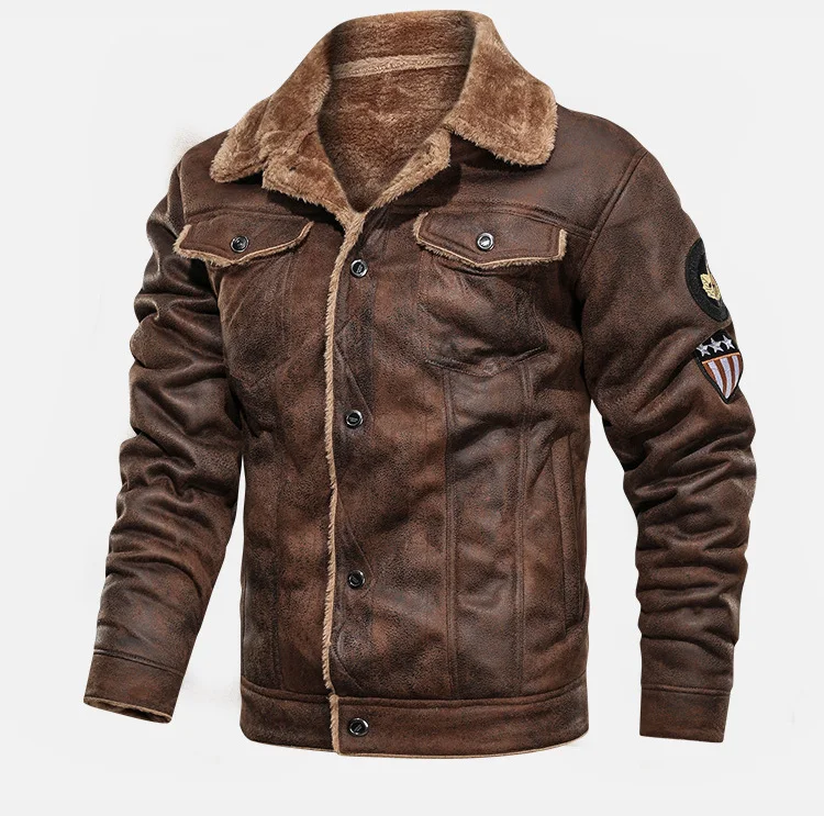 Куртка мужская из искусственной кожи, теплая кашемировая военная ку...