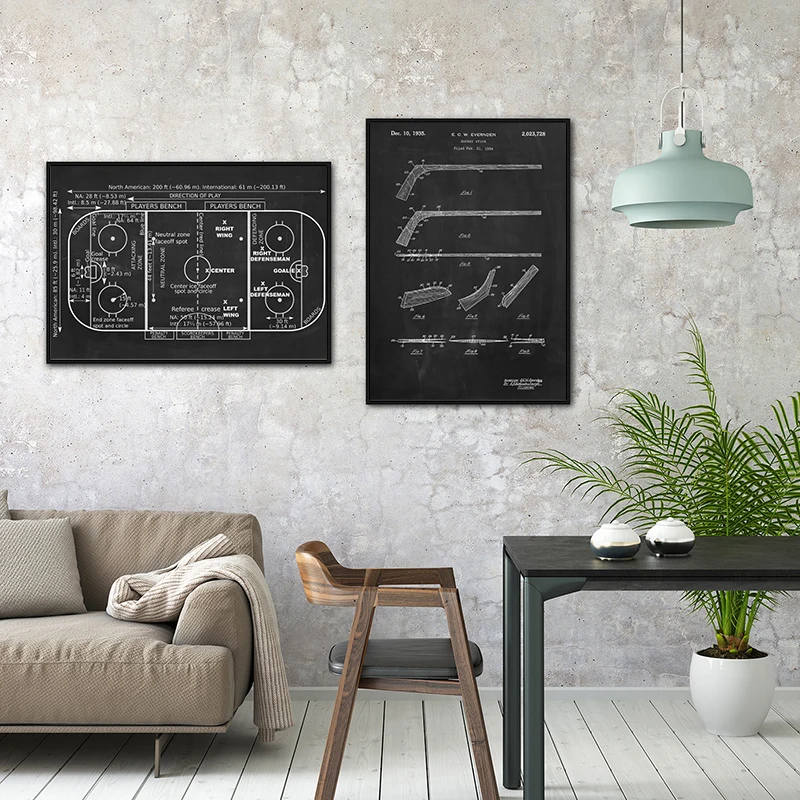 Хоккейная клюшка, постер, черно-белая Картина на холсте