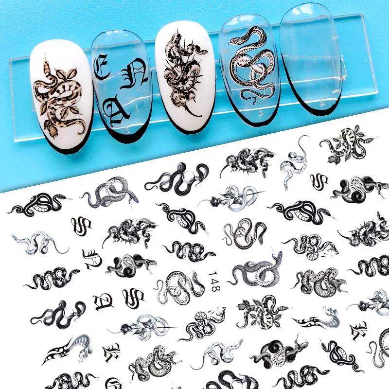 Наклейки для дизайна ногтей в виде черной змеи, дизайнерские готиче...