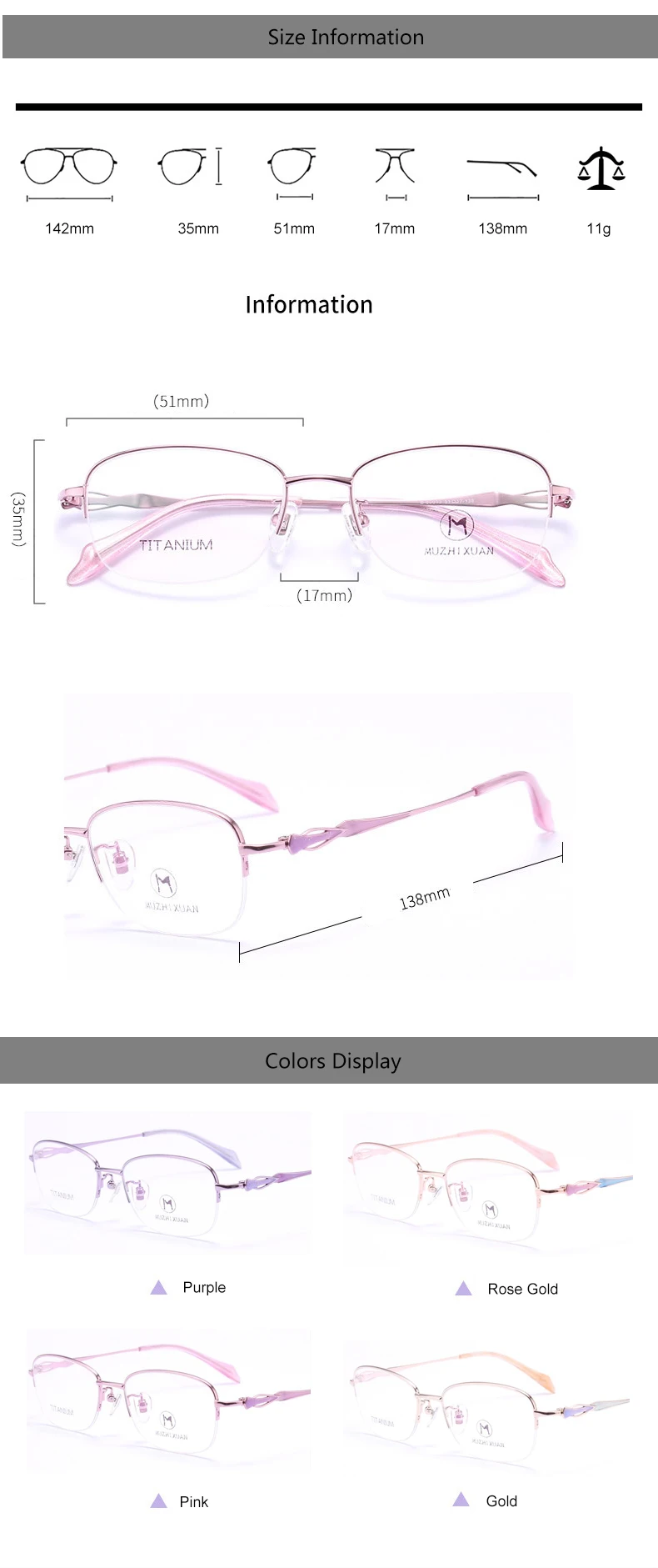 Женская оправа из чистого титана WIHODA, овальная оправа для очков, для близорукости и дальнозоркости, F80013