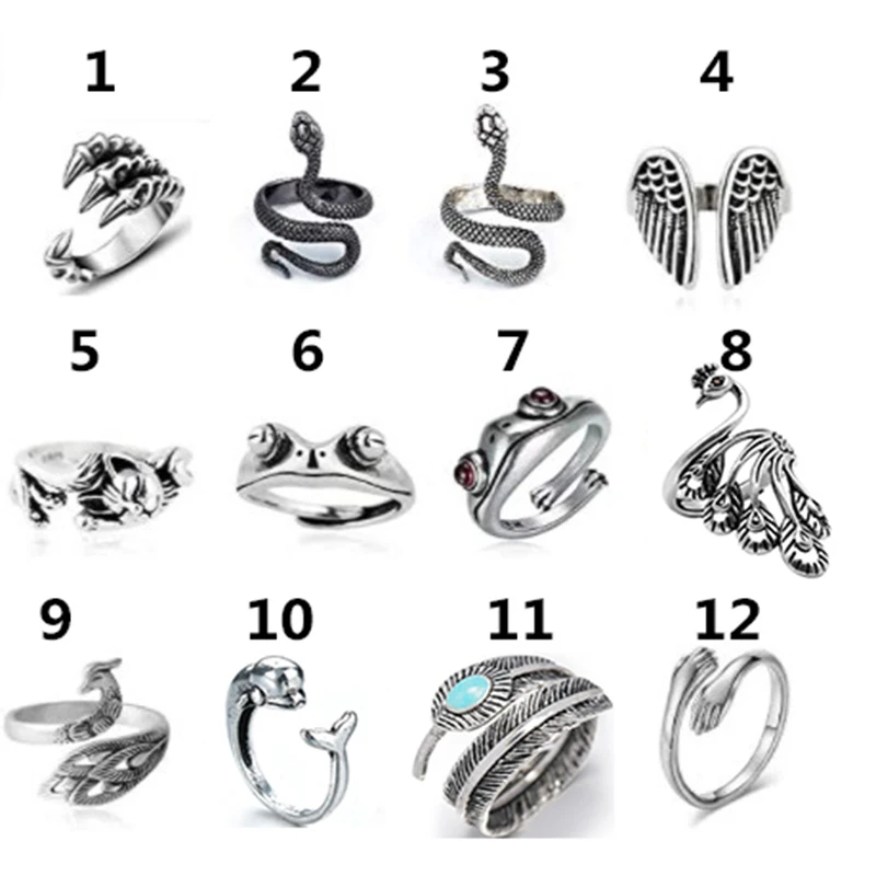 Женское кольцо с животными, Винтажное кольцо черного и серебряного ...
