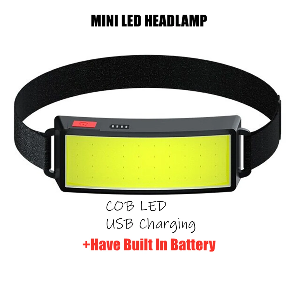 Супер яркий налобный фонарь с широким лучом, портативный светодиодный мини-фонарь с COB матрицей и встроенным аккумулятором, фонарик с USB-зарядкой, налобный фонарь