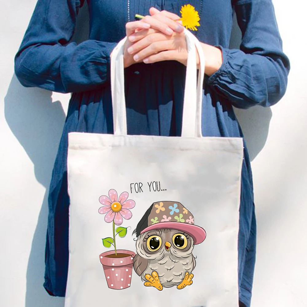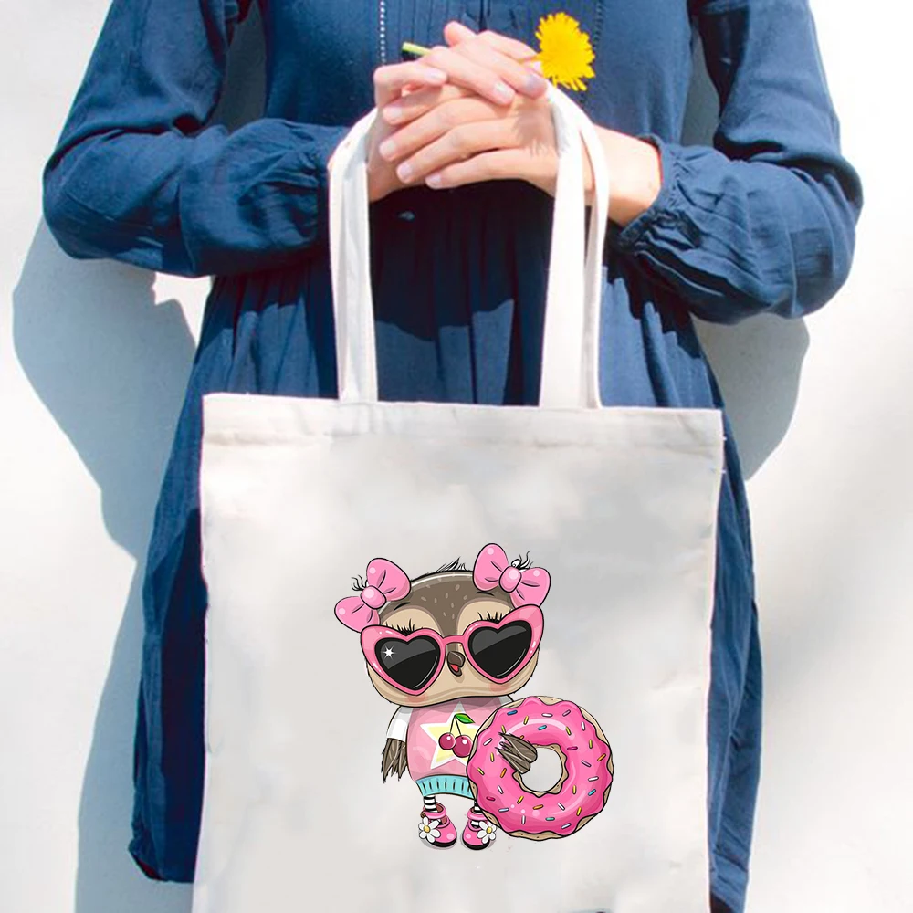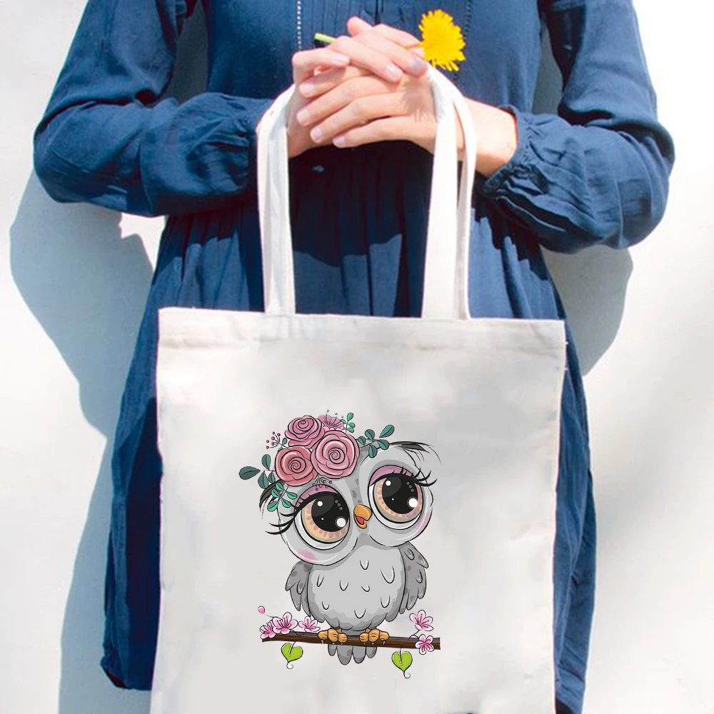 Модные трендовые сумки через плечо, женская сумка для покупок с милым рисунком совы, Повседневная Складная Женская дорожная сумка-шоппер в стиле Харадзюку