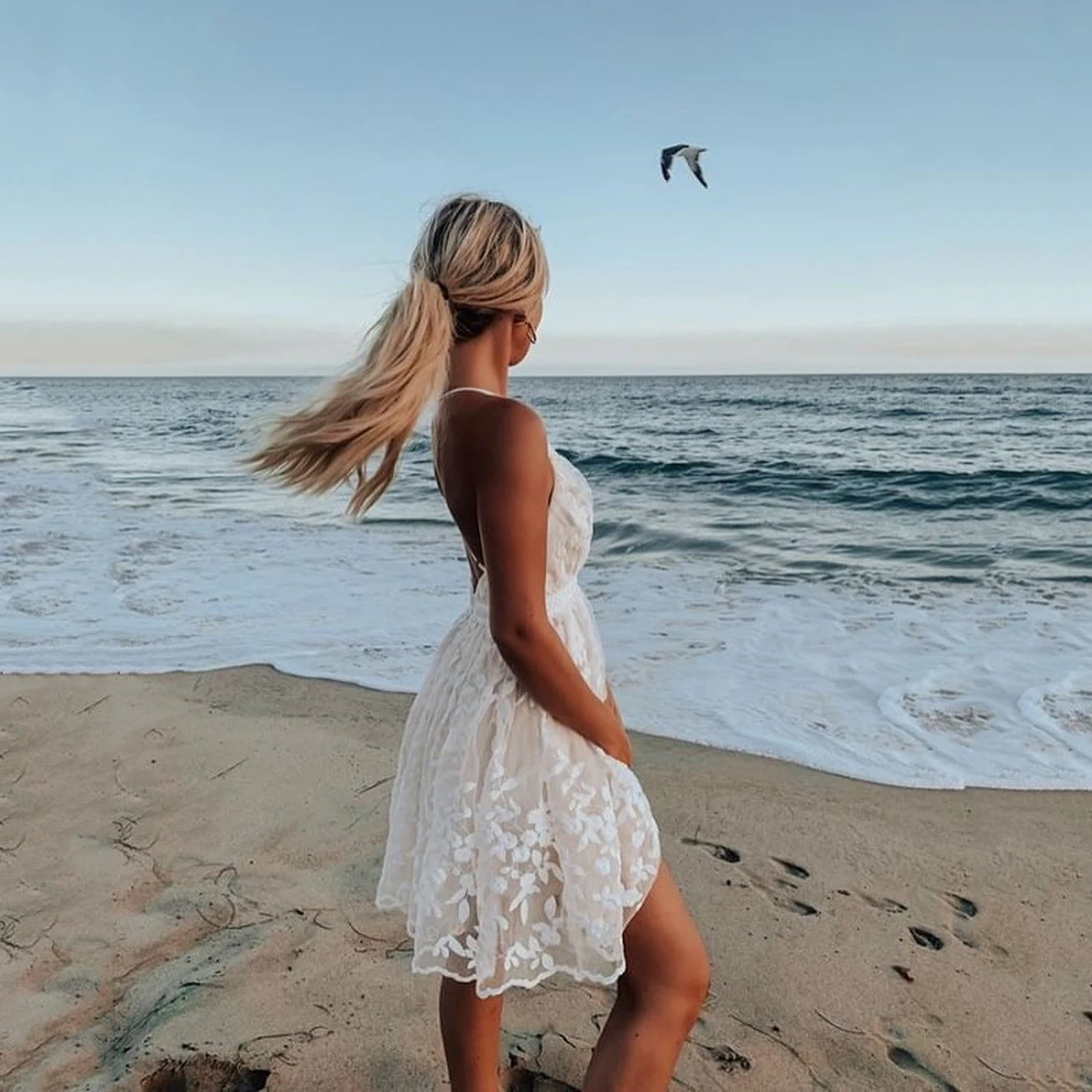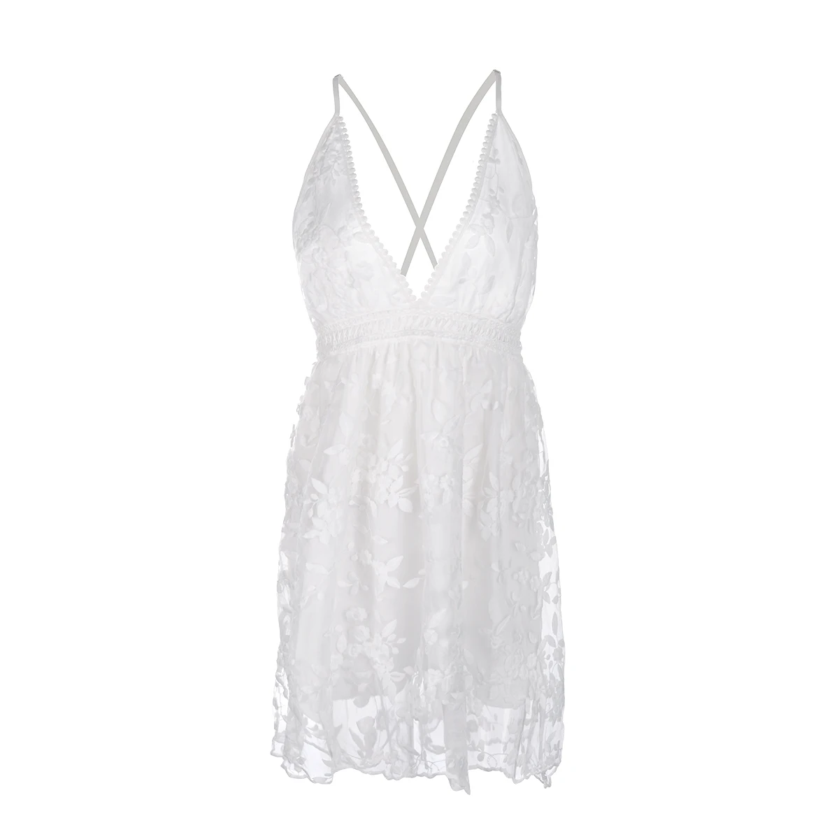 Платье wsevypo женское кружевное пляжное в стиле бохо, Белый сарафан-трапеция с цветочной вышивкой, с глубоким V-образным вырезом, для отпуска, на лето