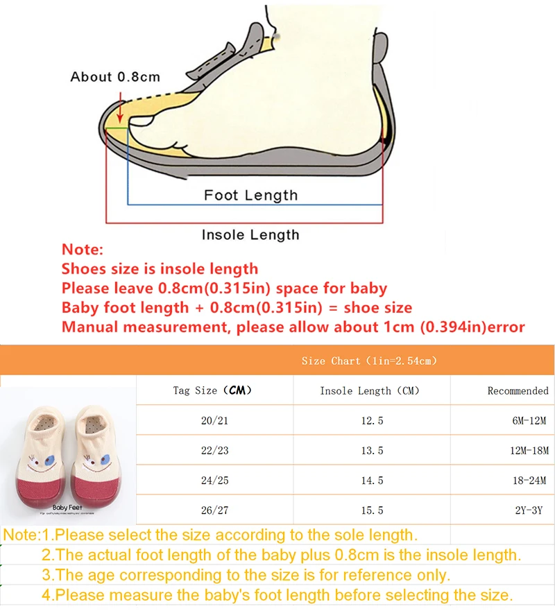 1. Пожалуйста, выберите размер в соответствии с длиной подошвы. Фактическая длина стопы ребенка плюс 0,8 см-это длина стельки. Возраст соответствует размеру только для справки. Пожалуйста, измерьте длину стопы ребенка перед выбором размера.