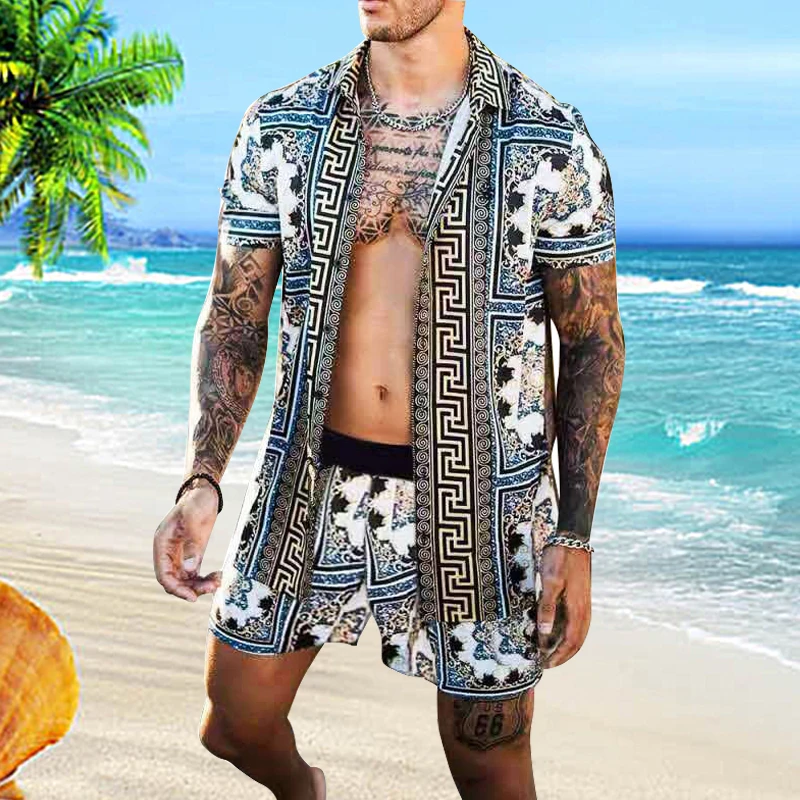 Комплект гавайской рубашки мужской из 2 предметов, Модный комплект с принтом, рубашка с коротким рукавом на пуговицах, пляжные шорты, Повседневная Уличная одежда, лето 2021