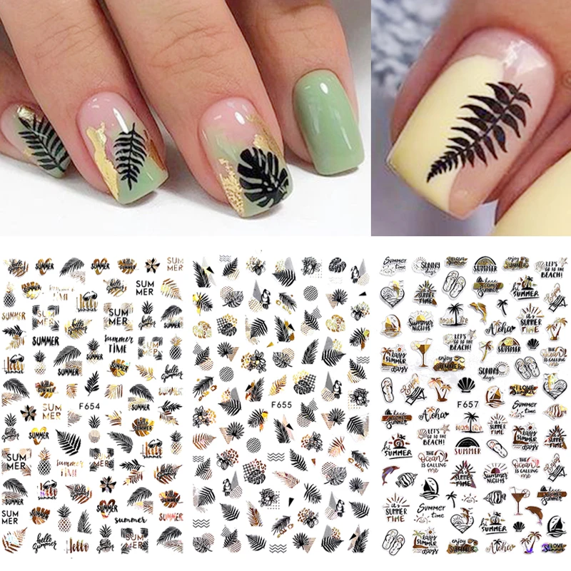 3D наклейки для ногтей в виде черных листьев, кленовый дизайн, блестящий рельеф для дизайна ногтей, клейкий наконечник, аксессуары для ногтей
