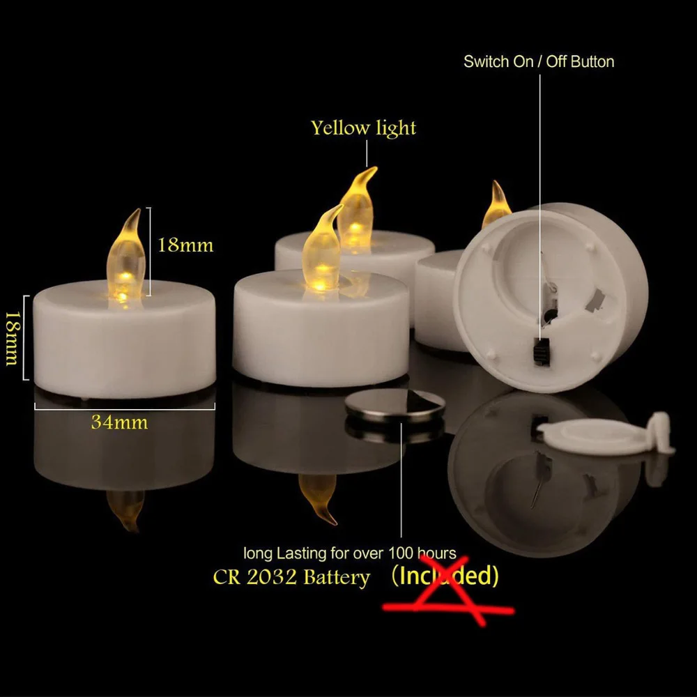 12 шт. светодиодные Чайные свечи на батарейках, беспламенные мерцающие Свадебные украшения