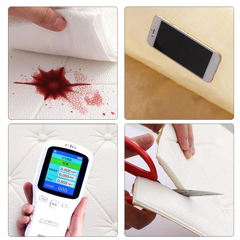 Особенности:** Самоклеящаяся пленка: Снимите и приклейте клейкие обои, чтобы наклеить их на стену, клей не требуется, быстро и легко устанавливается. Без остатков и повреждений поверхности стен после удаления.** 3d-эффект и текстура: Текстура 3D обоев изготовлена из мягкого вспененного материала, водонепроницаемая, влагостойкая и Звукоизоляционная.** Премиум качество: безопасный материал XPE нетоксичен, без запаха, легко устанавливается или удаляется.** Без повреждений стены при удалении: вы можете легко удалить обои со стены, не повредив их.** Мягкий и прочный: трехмерное украшение из мягкой пены, защищает от столкновений с детьми, безопасен для вашей семьи.** Широкое применение: Идеально подходит для нанесения наклеек на фон телевизора, кухню, гостиную, столовую, спальню, офис и многое другое.** Простота установки:1. Тщательно очистите поверхность.2. Снимите клеевую пленку и приклейте обои к поверхности.3. Аккуратно Разгладьте обои, чтобы закрепить их4. Сгладьте пузырьки воздуха при движении вниз.