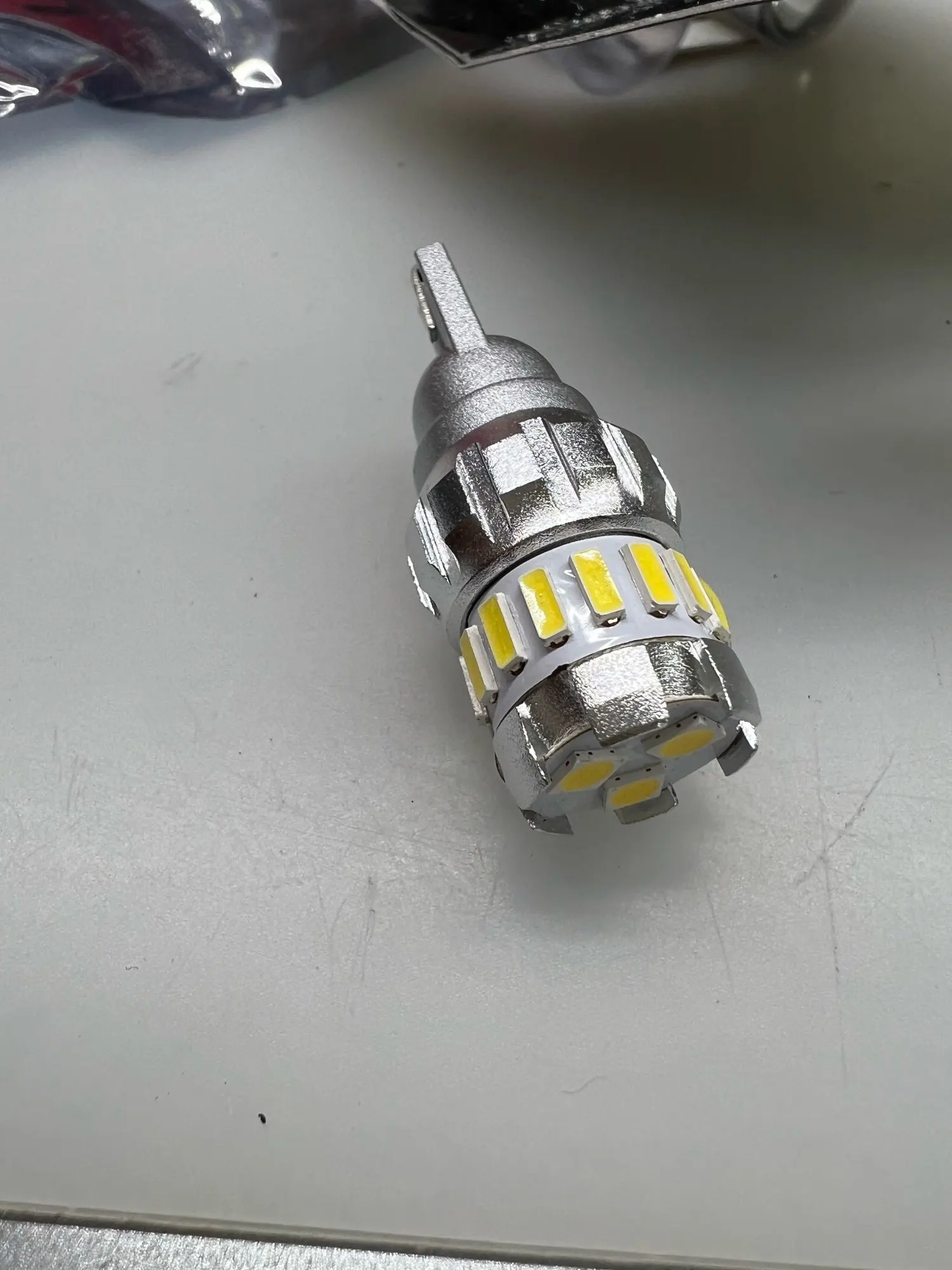 Спецификация:Розетка: T15, T16, W16W, 912, 921Напряжение: 9-18 в постоянного токаТок: 0.42AМощность: 5 ВтЛюмен: 1200лмСветодиодный чип: 3 шт. 3030SMD + 15 шт. 4014SMDЦвет: 6500k белыйПрименение: используется только для подсветки заднего ходаПосылка включает в себя: 2 шт. T15 светодиодный