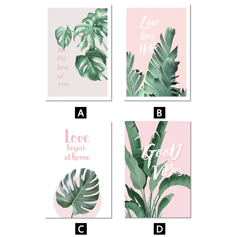 Картина на холсте с зелеными листьями, настенный художественный постер розового цвета, креативные картины для столовой, украшение для гостиной, домашний декор