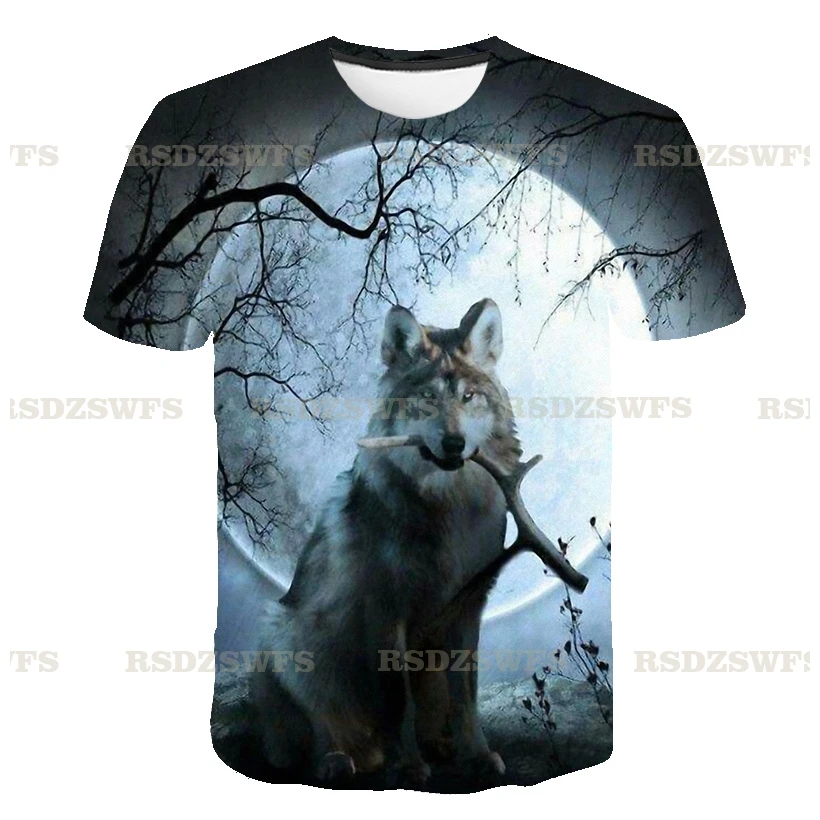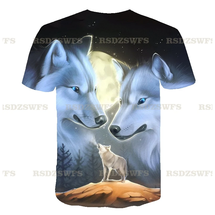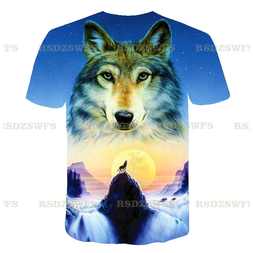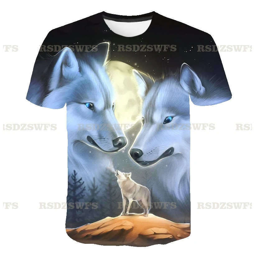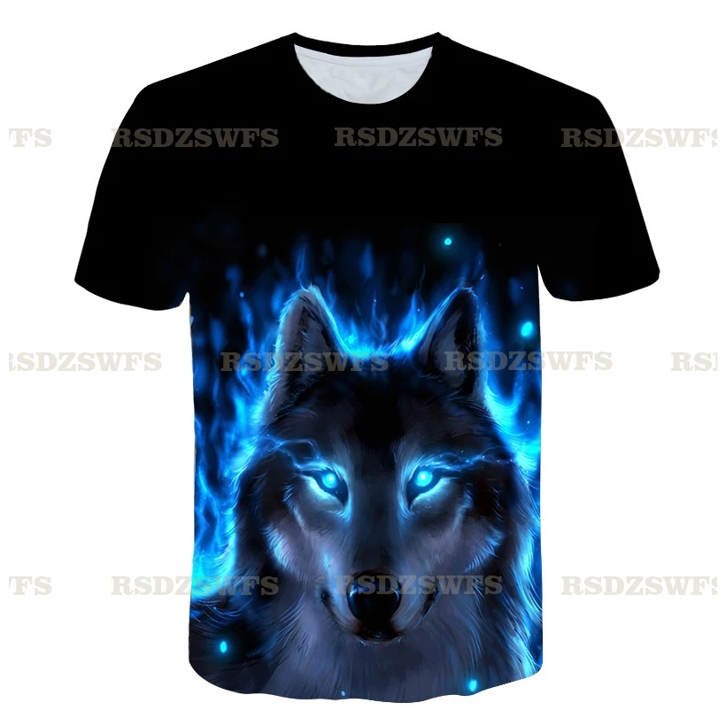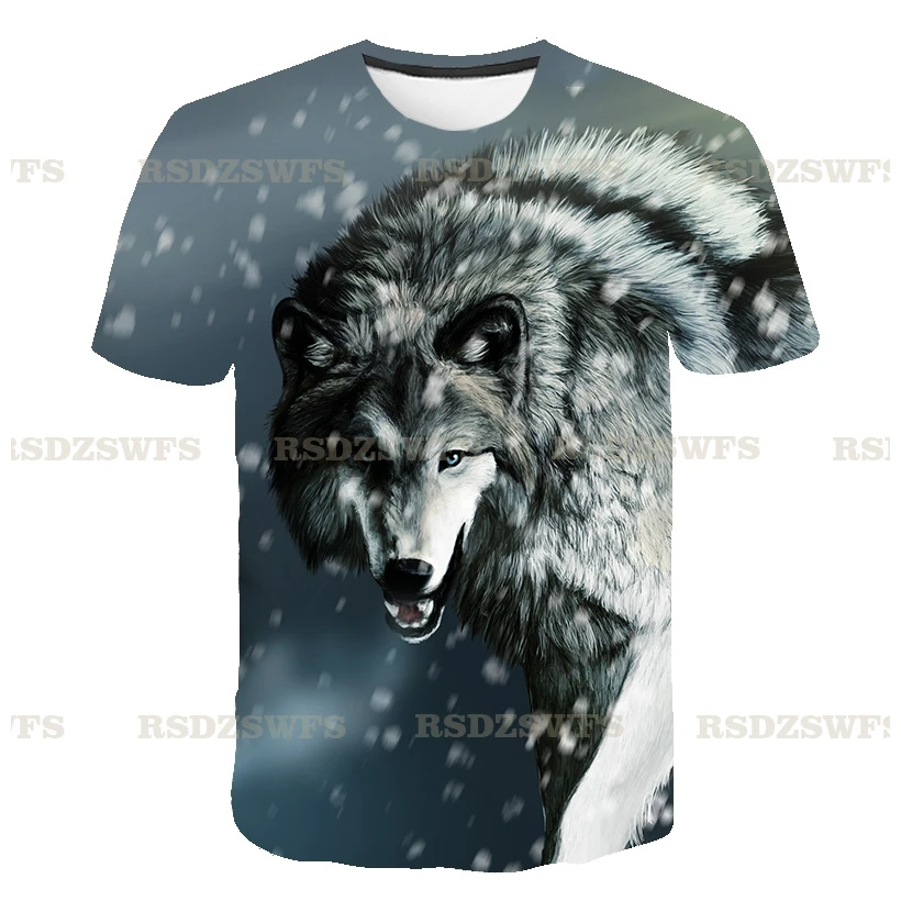 Летняя модная футболка с волком, для мальчиков, с короткими рукавами, новейшие футболки с животными, детские 3D топы для девочек, 2021