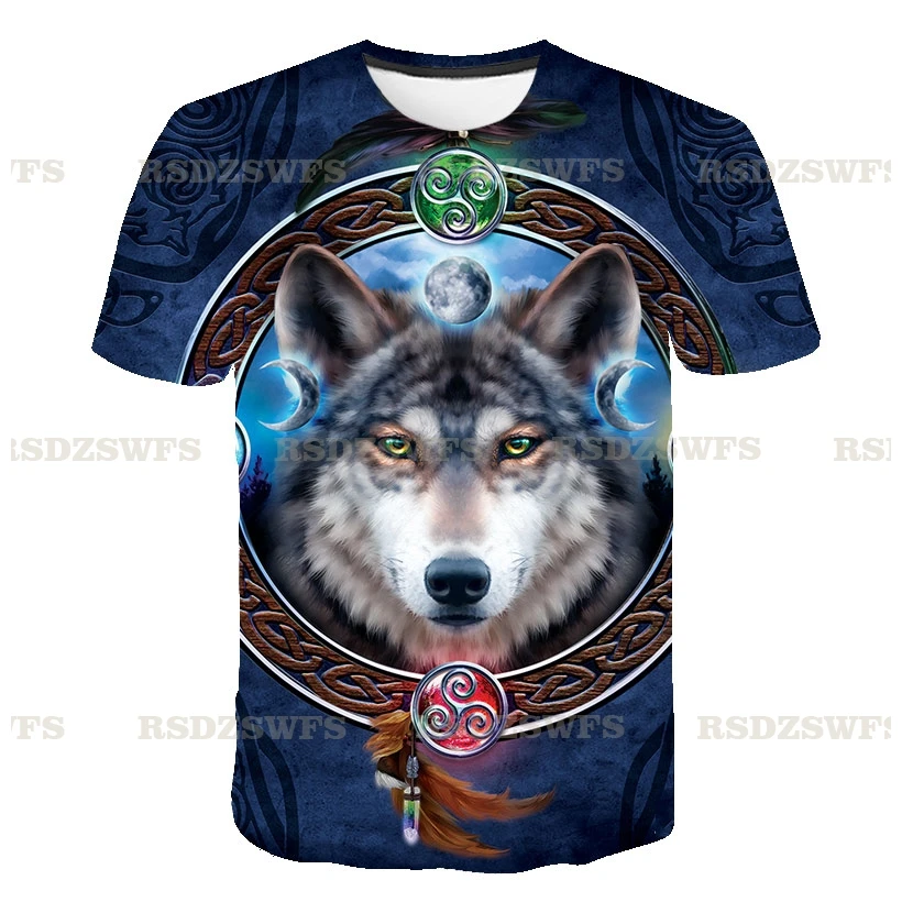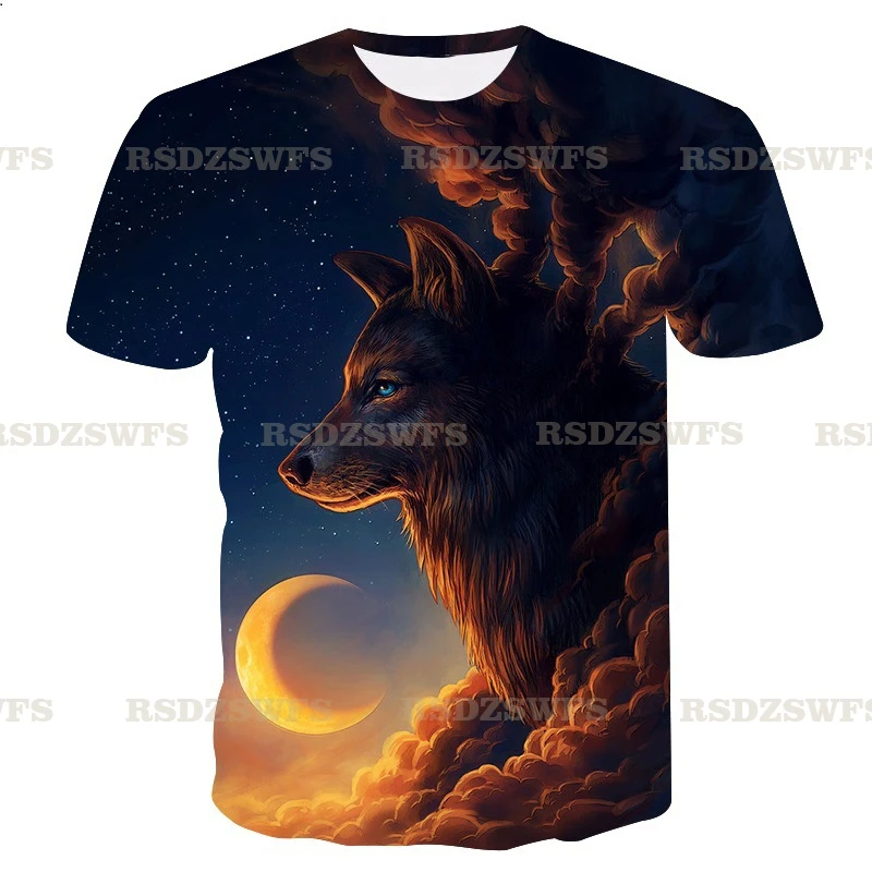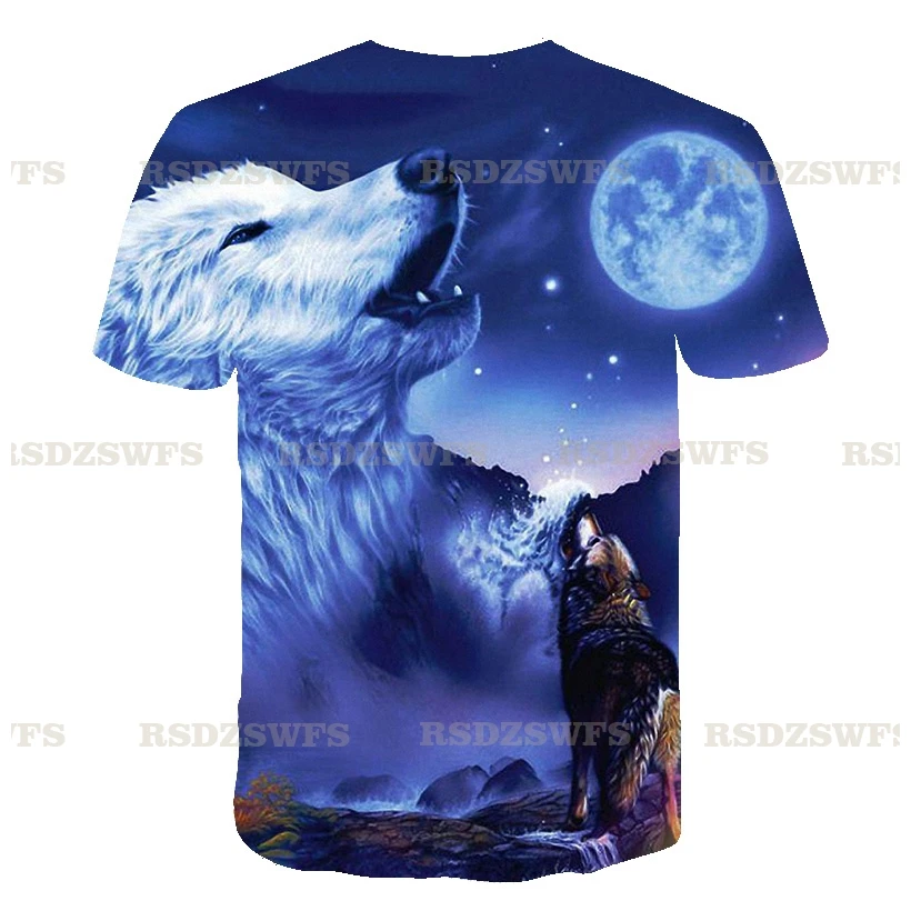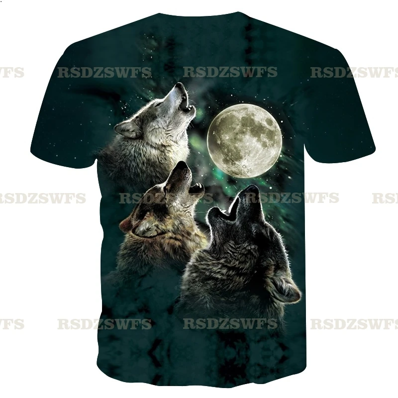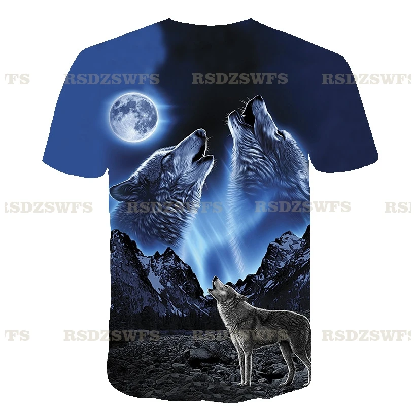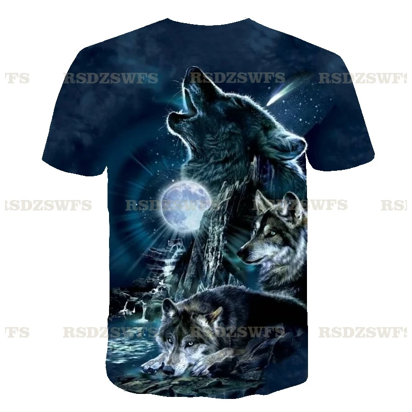 Летняя модная футболка с волком, для мальчиков, с короткими рукавами, новейшие футболки с животными, детские 3D топы для девочек, 2021