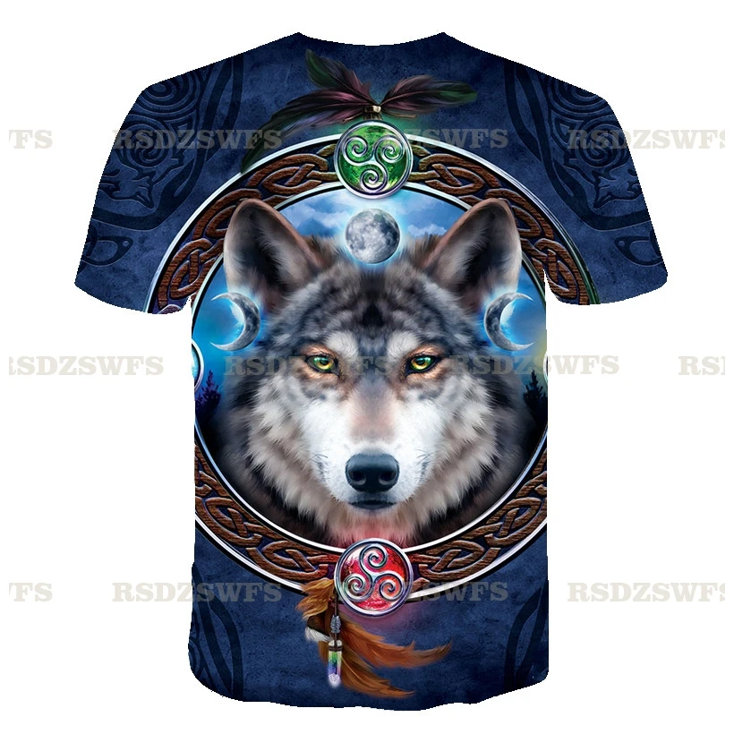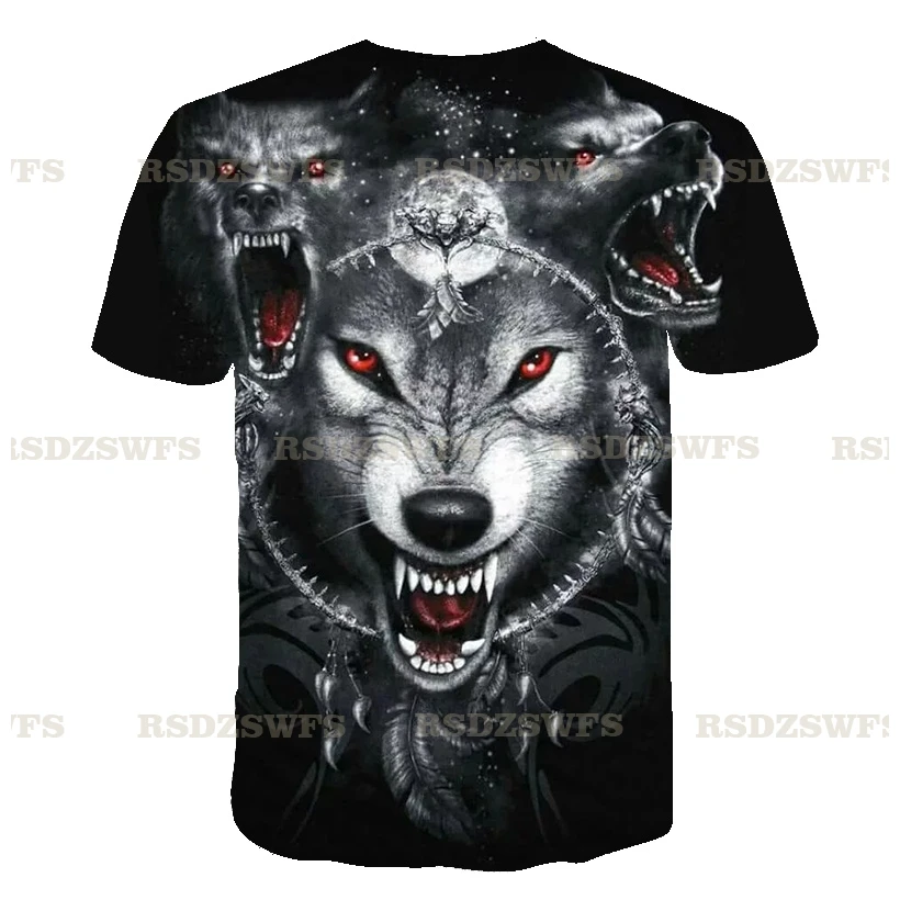 Футболка мужская с 3D-принтом волка, уличная одежда, топ с круглым ...