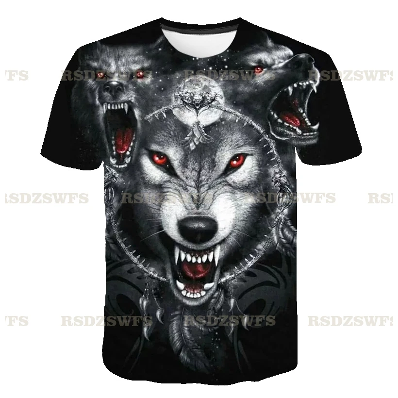 Футболка Мужскаяженская с 3D-принтом волка, Модный повседневный топ...
