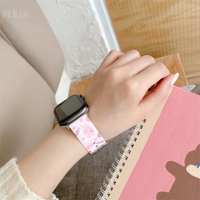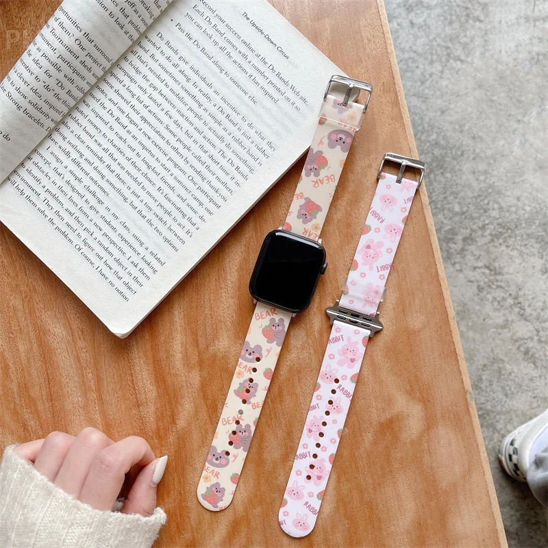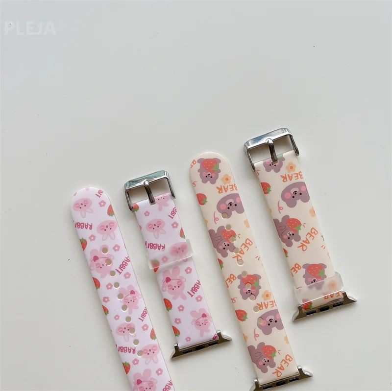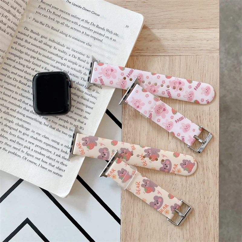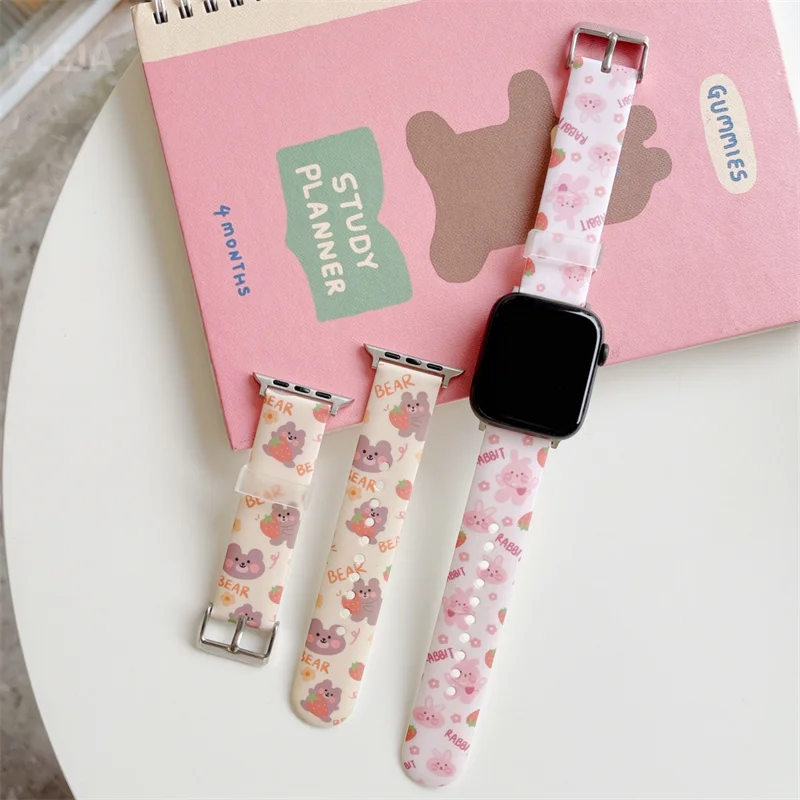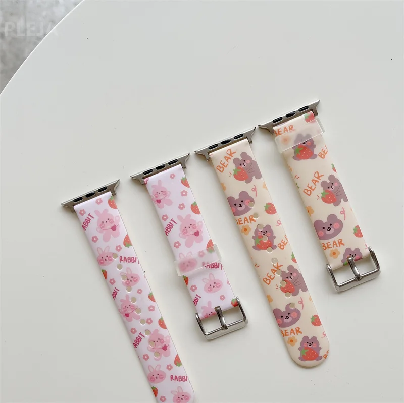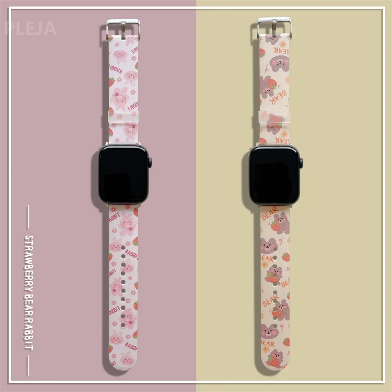 Ремешок для часов Apple iWatch 44, 40, 38, 42 мм, с клубничным медведем, Кроликом, для Samsung, Huawei, Xiaomi, 22 мм