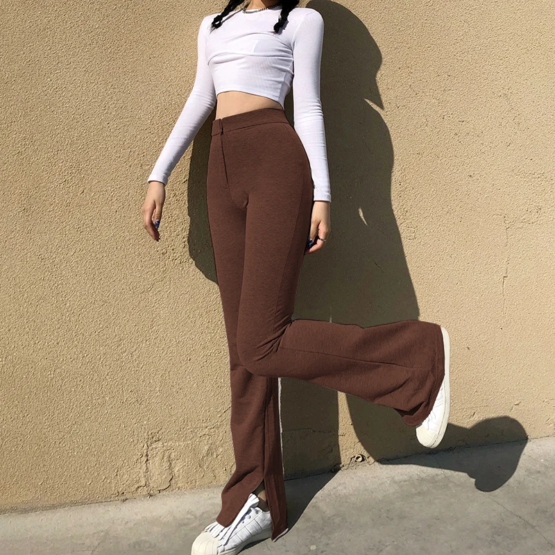 Y2K винтажные Брюки-клеш с высокой талией узкие брюки 90s эстетика Инди на молнии Узкие разрез брюки для девочек сексуальная женская одежда