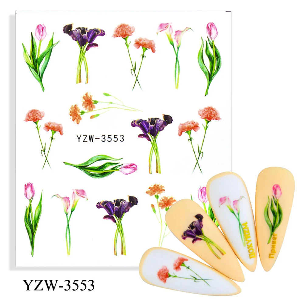 Лаванда красочные наклейки водяные наклейки для ногтей художественные наклейки для ногтей Роза водяной знак, маникюр модные наклейки для маникюра слайдер