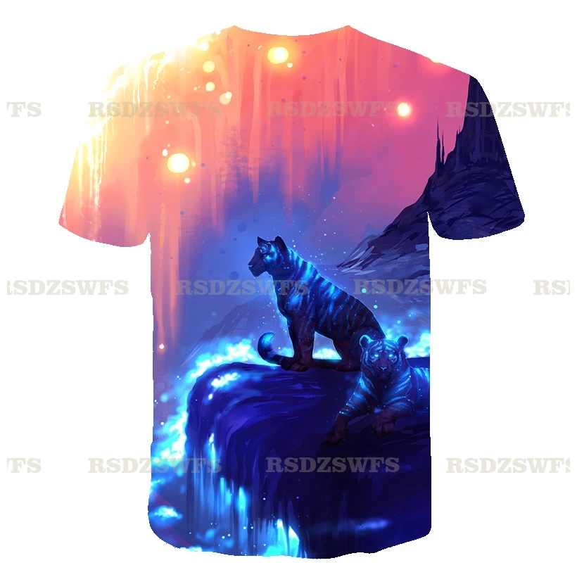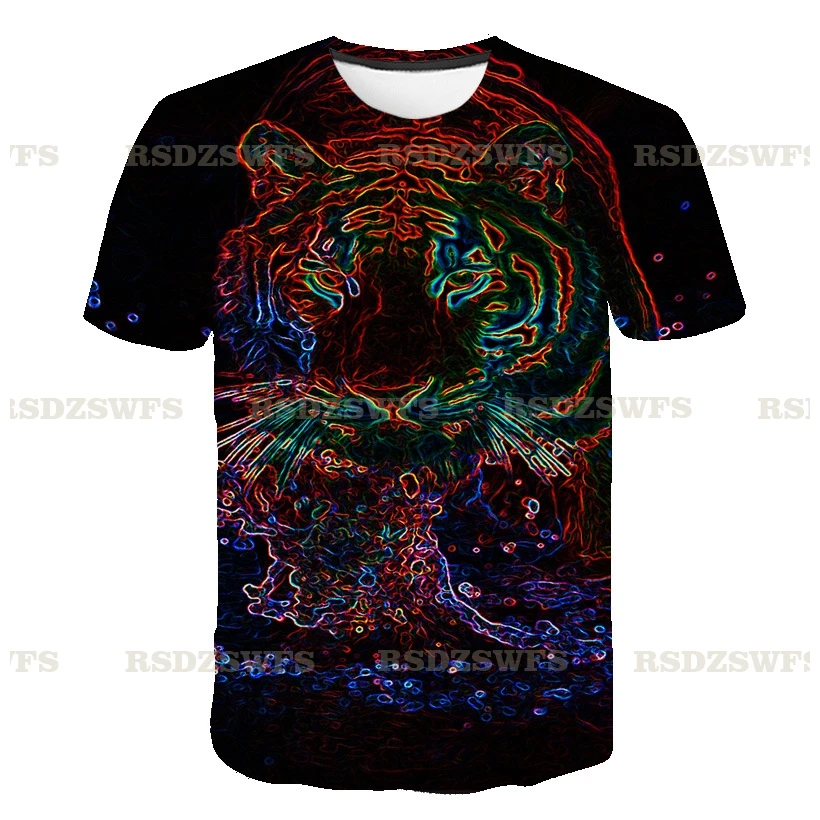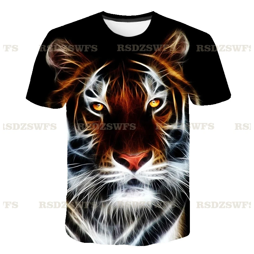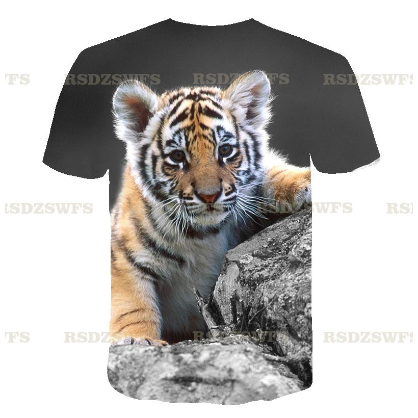 Футболка с 3D-принтом тигра и коротким рукавом для мальчиков и девочек