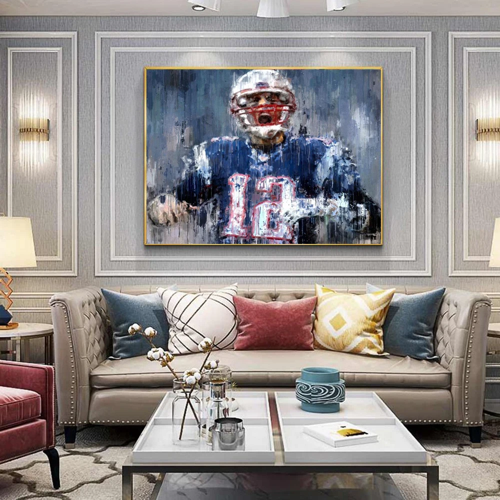 Абстрактный том Брэди, новый английский патриоты, Импрессионистский стиль, Оригинальная Живопись на холсте, постер для регби, декор комнаты