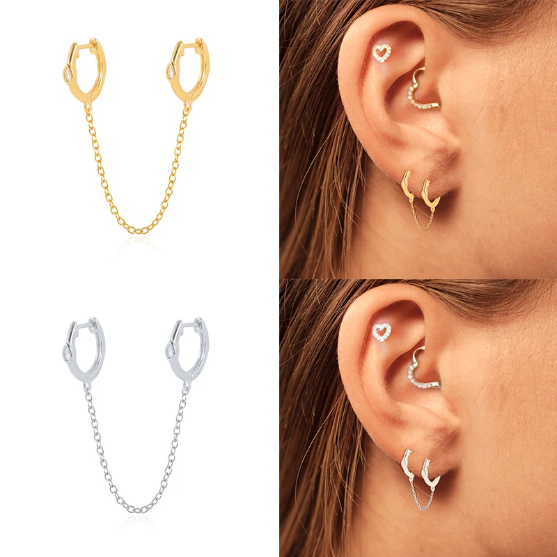 ROXI 925 пробы серебряные женские серьги круглые кругу проложен микро циркон цепь кисточкой серьги на Ушную раковину с пирсинг кольцо серьги ювелирные изделия Pendientes