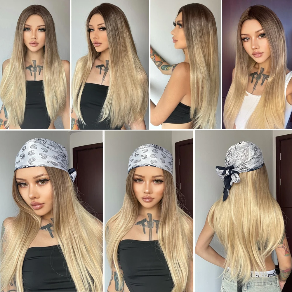 ALAN EATON, длинные, шелковые, прямые, Омбре, коричневые, светлые, золотые, синтетические парики для женщин, термостойкие, натуральные, средняя часть, парики для волос