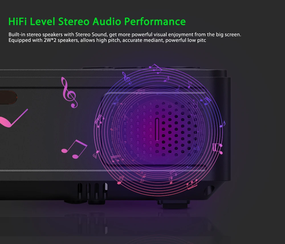 Встроенные стереодинамики со стереозвуком обеспечивают более мощное визуальное наслаждение с большого экрана.Оснащен 2W * 2 динамиками, позволяет высокий шаг, точный медиант, мощный низкий pitc