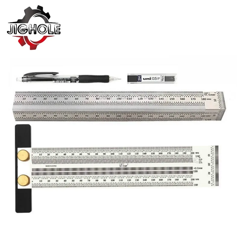 180-400 мм Высокоточный масштабная линейка для пальцев, искусственные бриллианты, Т-образный отверстие линейка из нержавеющей деревообрабатывающий скрайбирования Mark Line Датчик плотник измерительный инструмент