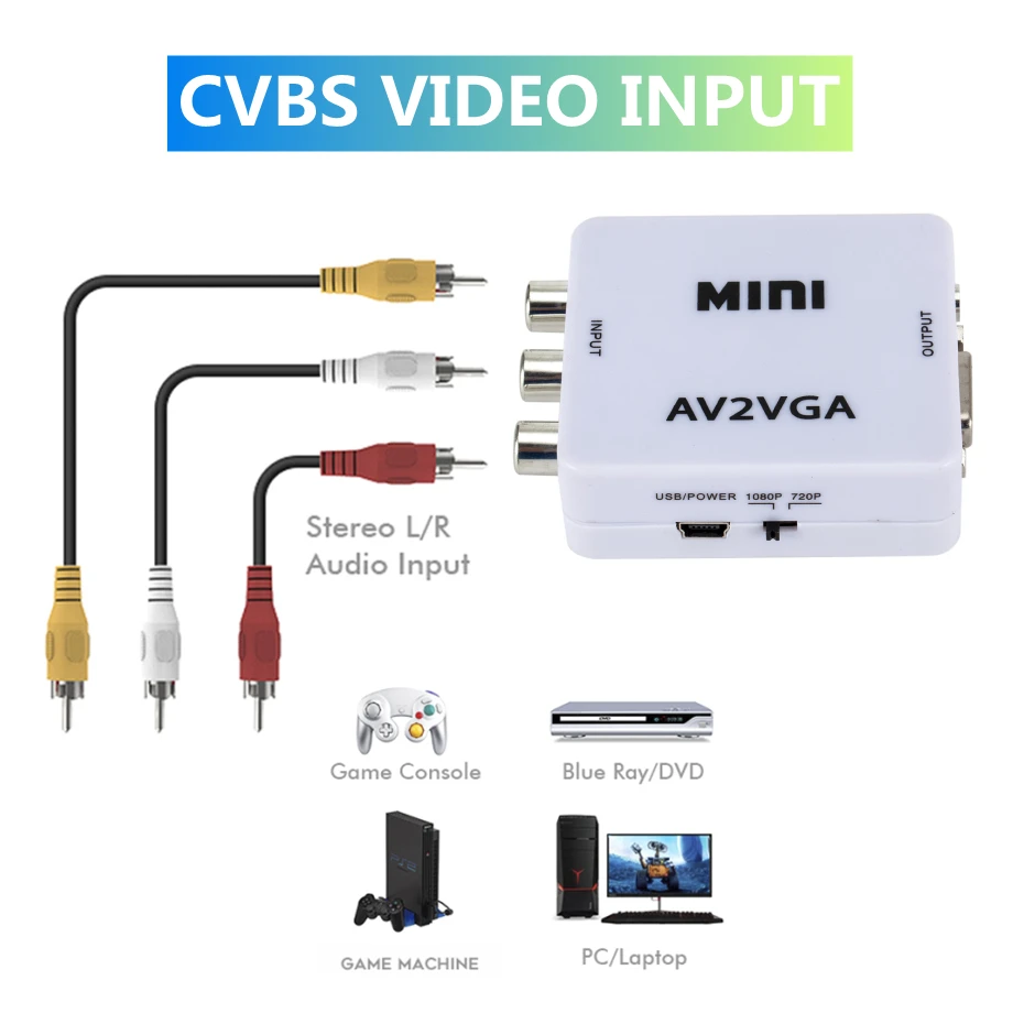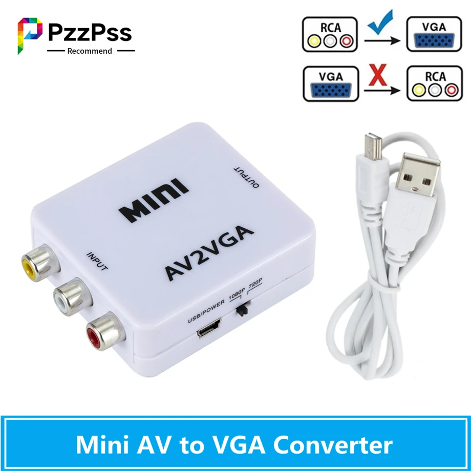 Мини-видеоконвертер PzzPss 1080P RCA AV на VGA, видеоконвертер, конвертер с 3,5 мм аудио AV2VGA CVBS + аудио на ПК HDTV