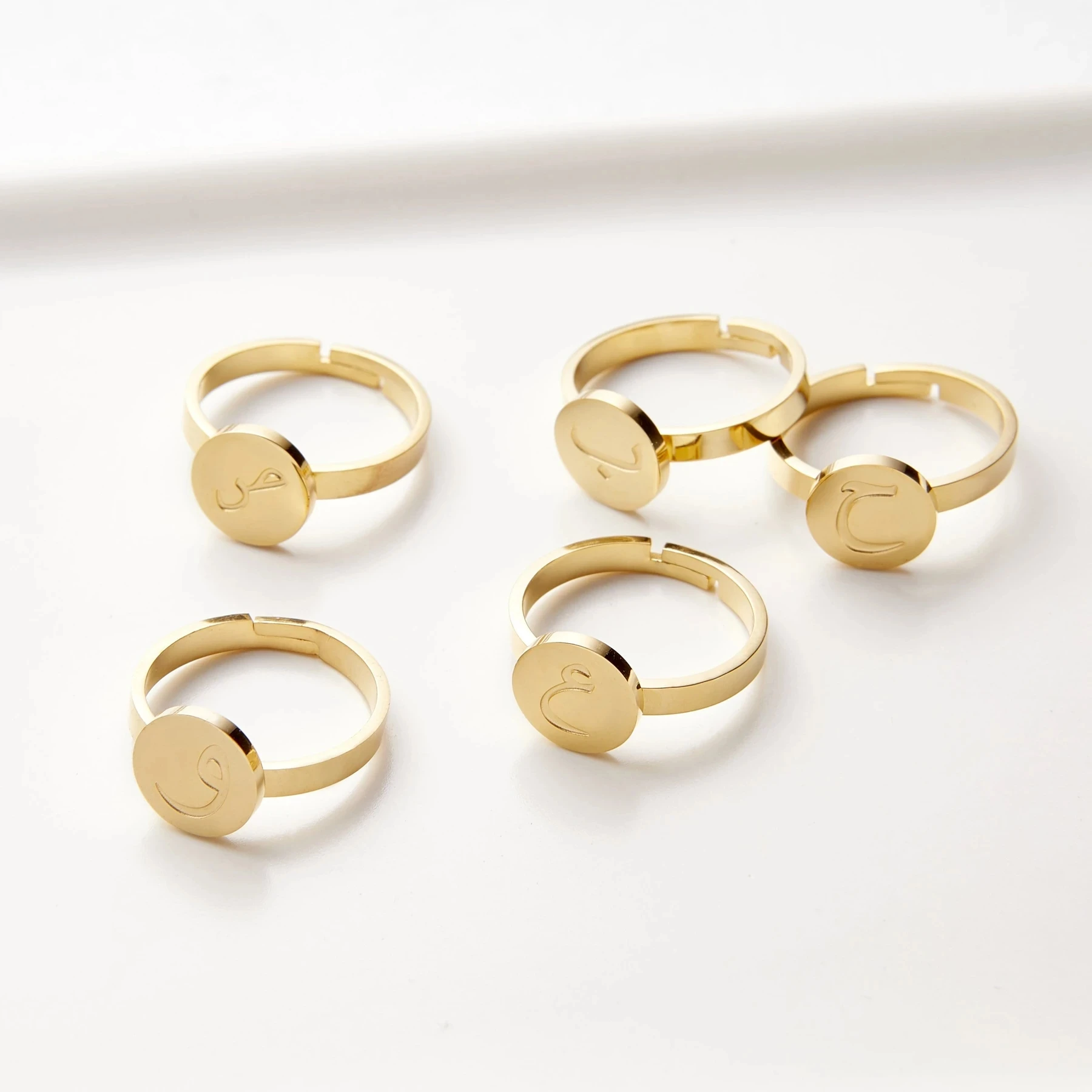 Персонализированные арабский кольца с буквами золото Нержавеющаяста...